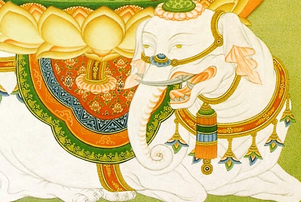 ರಾಜನ ಪ್ರಾರ್ಥನೆಯನ್ನು ಕೇಳಿ ಆನೆಯ ರೂಪದಲ್ಲಿರುವ ಬೋಧಿಸತ್ವನು ಕೆಳಗಿಳಿದು ಬಂದು ಗಂಭೀರವಾಗಿ ನಿಂತನು. ಮಾವಟಿಗನು ನಡೆದ ಎಲ್ಲಾ ಸಂಗತಿಯನ್ನೂ ಕಾಶೀರಾಜನೊಂದಿಗೆ ಹೇಳಿದನು. ರಾಜನು ಆ ದೈವಿಕ ಶಕ್ತಿಯ ಆನೆಗಾಗಿ ಸುಂದರವಾದ ಗಜಶಾಲೆಯನ್ನು ನಿರ್ಮಿಸಿದ. ಆಮೇಲೆ ತನ್ನ ರಾಜ್ಯವನ್ನು ಮೂರು ಭಾಗಗಳಾಗಿ ಮಾಡಿ, ಒಂದು ಭಾಗವನ್ನು ಆನೆಯ ರೂಪದಲ್ಲಿರುವ ಬೋಧಿಸತ್ವನ ಪೋಷಣೆಗೂ, ಎರಡನೇ ಭಾಗವನ್ನು ಅದರ ಮಾವಟಿಗನಿಗೂ ಕೊಟ್ಟನು. ಉಳಿದ ಮೂರನೇ ಭಾಗವನ್ನು ಮಾತ್ರ ತನ್ನ ಉಪಯೋಗಕ್ಕೆ ಇಟ್ಟುಕೊಂಡ.
