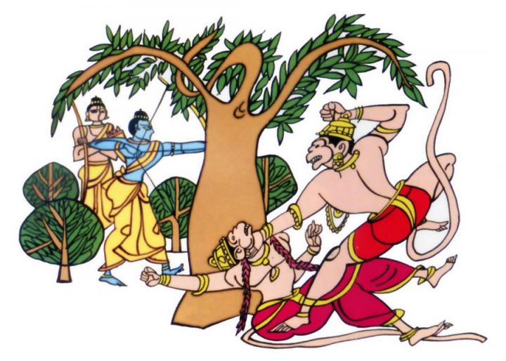 ಬಿಲ್ಲಿನ ಠೇಂಕಾರ ಕೇಳಿ ವಾಲಿ ತಿರುಗಿ ನೋಡುವಷ್ಟರಲ್ಲಿ ನುಗ್ಗಿ ಬಂದ ರಾಮಬಾಣ ವಾಲಿಯ ಹೃದಯವನ್ನು ಹೊಕ್ಕಿತ್ತು. ವಾಲಿ ಕೆಳಗುರುಳಿದ.