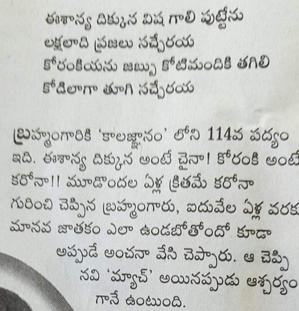 ವೀರಬ್ರಹ್ಮಂ ಕಾಲಜ್ಞಾನದಲ್ಲಿ ಕರೋನ ಕುರಿತು ಹೇಳಲಾಗಿತ್ತೇ? ಇಲ್ಲಿದೆ ನೋಡಿ ಆ ಭವಿಷ್ಯ ವಾಣಿಯ ಅನುವಾದ… | ವಿ.ಚಂದ್ರಶೇಖರ ನಂಗಲಿ