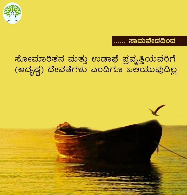 ಆದ್ದರಿಂದ, ಅದೃಷ್ಟಕ್ಕಾಗಿಯೋ ಕರುಣೆಗಾಗಿಯೋ ಕಾಯುತ್ತ ಕೂರಬೇಡಿ. “ಹೇಗೋ ನಡೆಯುತ್ತದೆ” ಅನ್ನುವ ುಡಾಫೆ ಬಿಟ್ಟು, ಸೋಮಾರಿತನ ಕೊಡವಿಕೊಂಡು ಕೆಲಸ ಶುರು ಮಾಡಿ. ಗೆಲುವು ನಿಮಗೆ ಕಟ್ಟಿಟ್ಟ ಬುತ್ತಿ. – ಇದು ಸಾಮವೇದ ಶ್ಲೋಕದ ಒಟ್ಟು ಬೋಧೆ.