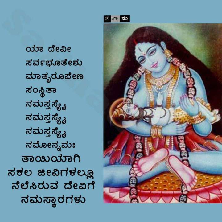 ಯಾ ದೇವೀ ಸರ್ವ ಭೂತೇಶು ಮಾತೃರೂಪೇಣ ಸಂಸ್ಥಿತಾ| ನಮಸ್ತಸ್ಯೈ ನಮಸ್ತಸ್ಯೈ ನಮಸ್ತಸ್ಯೈ ನಮೋನ್ನಮಃ||