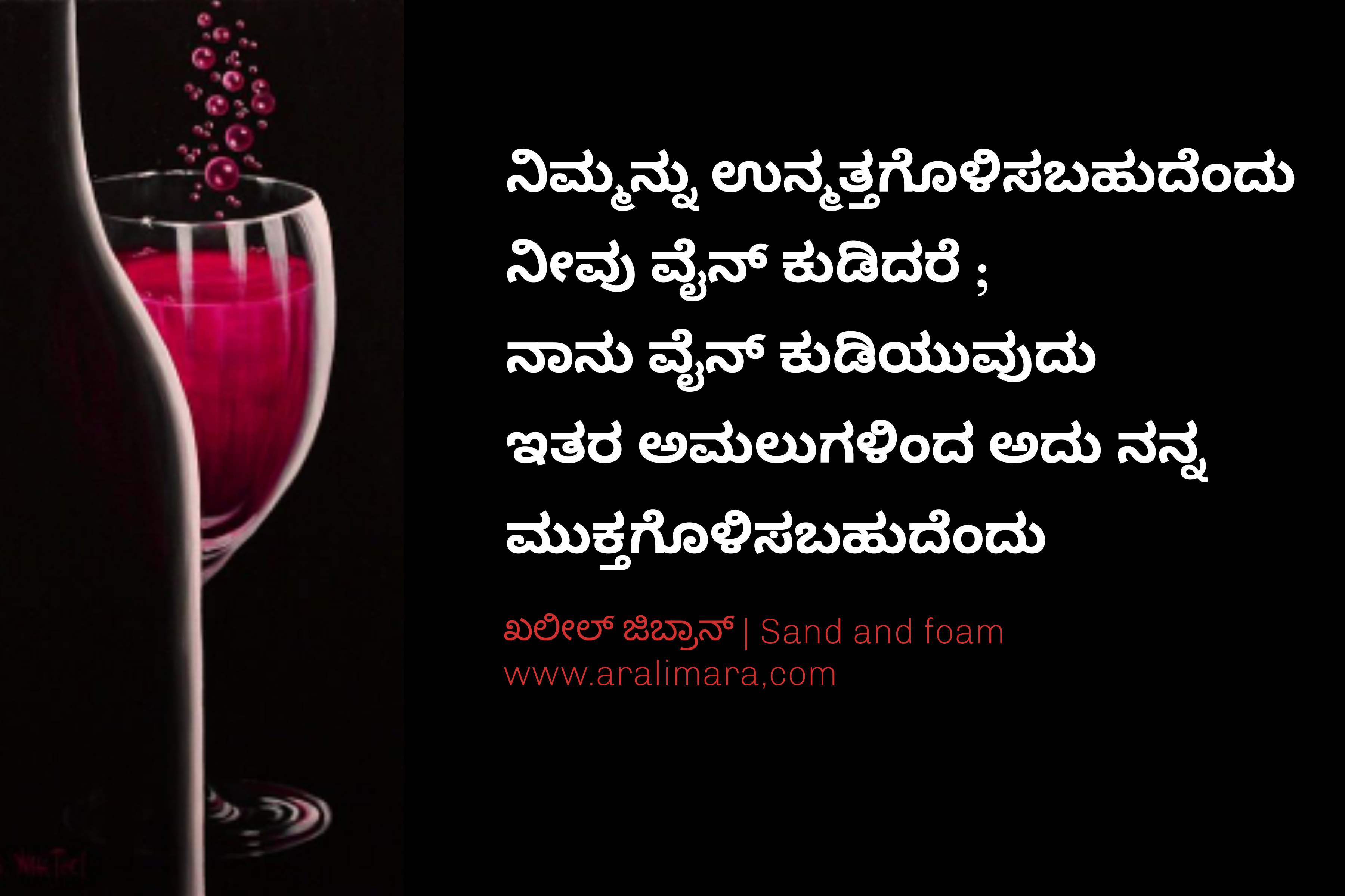sand and foam – ಮರಳು ಮತ್ತು ನೊರೆ ಖಲೀಲ್ ಜಿಬ್ರಾನ್’ರ ಇತರ ಕೃತಿಗಳಂತೆಯೇ ತತ್ವ ದರ್ಶನ ಮಾಡಿಸುವ ಸುಂದರ ಕೃತಿ. ಕಾವ್ಯಶೈಲಿಯ ಈ ಕೃತಿಯ ಬರಹಗಳು ಬೊಗಸೆಯಲ್ಲೆ ಜಗತ್ತನ್ನು ತೋರುವ ವೈಶಿಷ್ಟ್ಯದಿಂದ ಗಮನ ಸೆಳೆಯುತ್ತವೆ. ಅರಳಿಬಳಗ ಚಿದಂಬರ ನರೇಂದ್ರ ಇವನ್ನು ಕನ್ನಡಕ್ಕೆ ತಂದಿದ್ದಾರೆ.