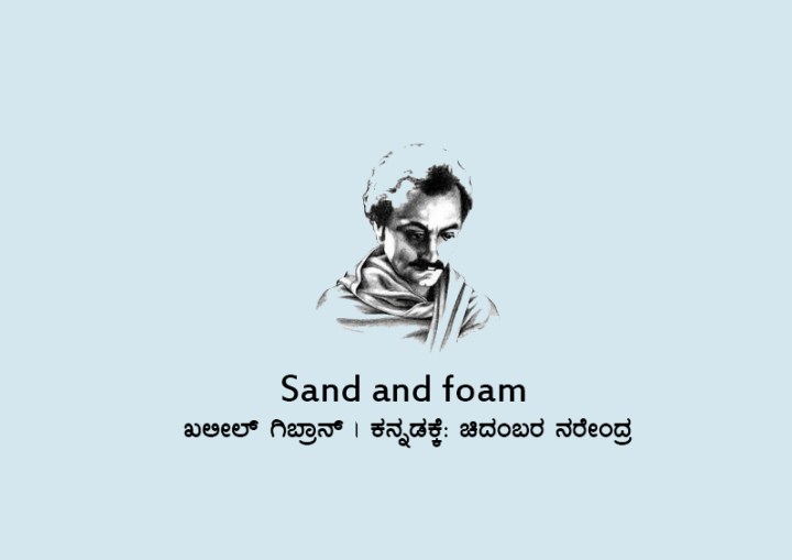 sand and foam – ಮರಳು ಮತ್ತು ನೊರೆ ಖಲೀಲ್ ಜಿಬ್ರಾನ್’ರ ಇತರ ಕೃತಿಗಳಂತೆಯೇ ತತ್ವ ದರ್ಶನ ಮಾಡಿಸುವ ಸುಂದರ ಕೃತಿ. ಕಾವ್ಯಶೈಲಿಯ ಈ ಕೃತಿಯ ಬರಹಗಳು ಬೊಗಸೆಯಲ್ಲೆ ಜಗತ್ತನ್ನು ತೋರುವ ವೈಶಿಷ್ಟ್ಯದಿಂದ ಗಮನ ಸೆಳೆಯುತ್ತವೆ. ಅರಳಿಬಳಗ ಚಿದಂಬರ ನರೇಂದ್ರ ಇವನ್ನು ಕನ್ನಡಕ್ಕೆ ತಂದಿದ್ದಾರೆ.