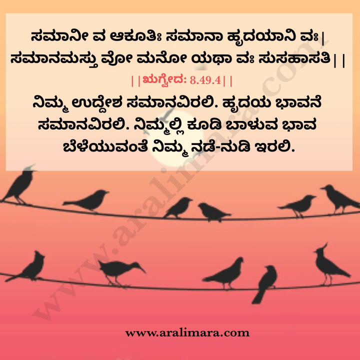 ನಿಮ್ಮ ಉದ್ದೇಶ ಸಮಾನವಿರಲಿ. ಹೃದಯ ಭಾವನೆ ಸಮಾನವಿರಲಿ. ಯಾವ ಬಗೆಯಿಂದ ನಿಮ್ಮಲ್ಲಿ ಕೂಡಿ ಇರುವ ಭಾವವು ಬೆಳೆಯುವುದೋ ಆ ಬಗೆಯಲ್ಲಿ ನಿಮ್ಮ ನಡೆ-ನುಡಿ ಇರಲಿ.