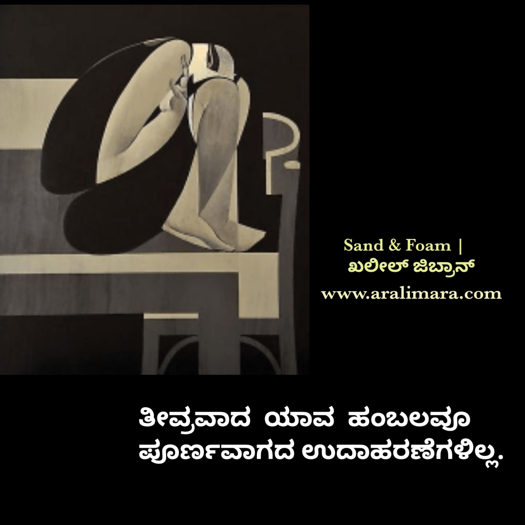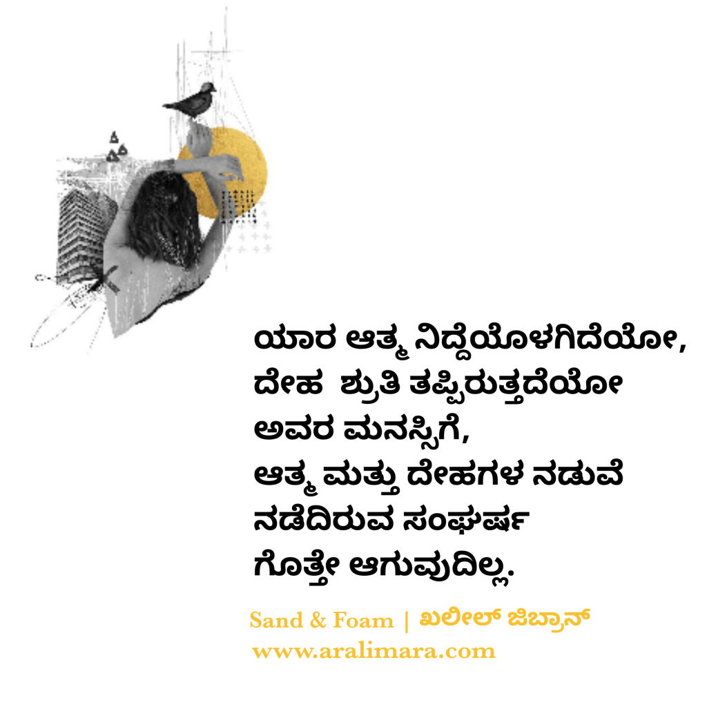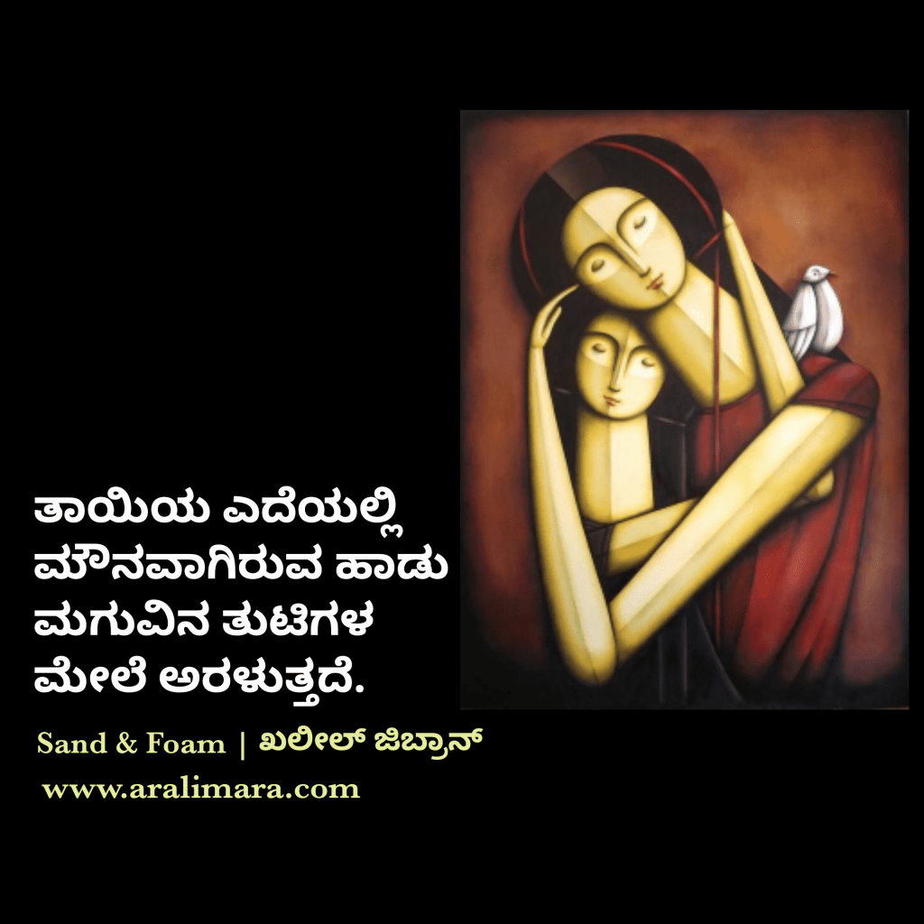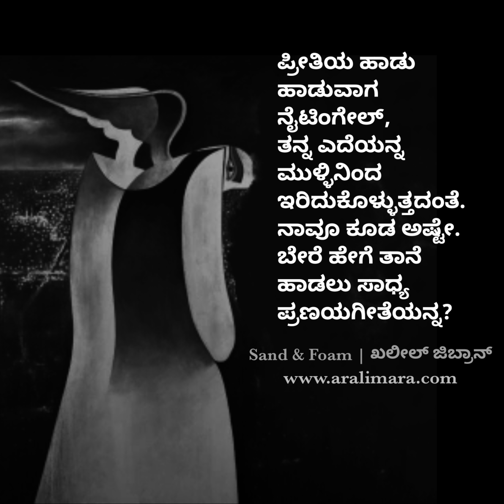 sand and foam – ಮರಳು ಮತ್ತು ನೊರೆ ಖಲೀಲ್ ಜಿಬ್ರಾನ್’ರ ಇತರ ಕೃತಿಗಳಂತೆಯೇ ತತ್ವ ದರ್ಶನ ಮಾಡಿಸುವ ಸುಂದರ ಕೃತಿ. ಕಾವ್ಯಶೈಲಿಯ ಈ ಕೃತಿಯ ಬರಹಗಳು ಬೊಗಸೆಯಲ್ಲೆ ಜಗತ್ತನ್ನು ತೋರುವ ವೈಶಿಷ್ಟ್ಯದಿಂದ ಗಮನ ಸೆಳೆಯುತ್ತವೆ. ಅರಳಿಬಳಗ ಚಿದಂಬರ ನರೇಂದ್ರ ಇವನ್ನು ಕನ್ನಡಕ್ಕೆ ತಂದಿದ್ದಾರೆ.