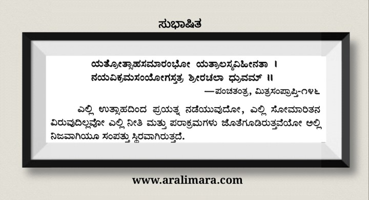 ಯತ್ರೋತ್ಸಾಹಸಮಾರಂಭೋ ಯತ್ರಾಲಸ್ಯವಿಹೀನತಾ| ನಯವಿಕ್ರಮ ಸಂಯೋಗಸ್ತತ್ರ ಶ್ರೀರಚಲಾ ಧ್ರುವಮ್||