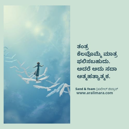 ಖಲೀಲ್ ಜಿಬ್ರಾನನ ಮರಳು ಮತ್ತು ನೊರೆ : ಗುಚ್ಛ 21 ಅಕ್ಟೋಬರ್ 20, 2020 By ಅರಳಿ ಮರ ಖಲೀಲ್ ಜಿಬ್ರಾನನ ಮರಳು ಮತ್ತು ನೊರೆಯ ನುಡಿಮುತ್ತುಗಳು… | ಕನ್ನಡಕ್ಕೆ : ಚಿದಂಬರ ನರೇಂದ್ರ 1 2 3 4 5 6 Share this:Tweet Click to email a link to a friend (Opens in new window) Email Click to share on Telegram (Opens in new window) Telegram Click to share on WhatsApp (Opens in new window) WhatsApp ಇನ್ನಷ್ಟು Click to print (Opens in new window) Print Click to share on Reddit (Opens in new window) Reddit Share on TumblrLike ಲೋಡ್ ಆಗುತ್ತಿದೆ... Related About ಅರಳಿ ಮರ ಆಧ್ಯಾತ್ಮ, ವ್ಯಕ್ತಿತ್ವ ವಿಕಸನ ಮತ್ತು ಜೀವನ ಶೈಲಿ