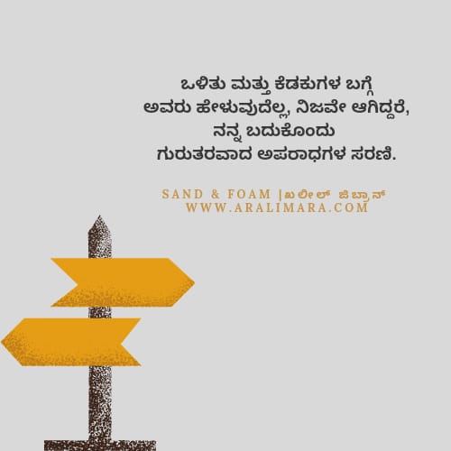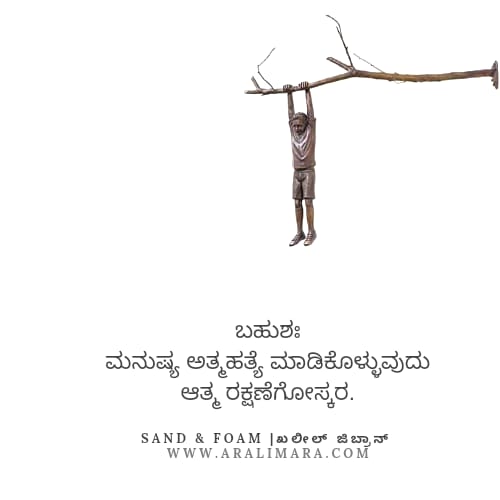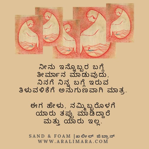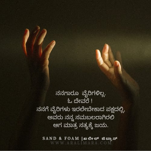 ಖಲೀಲ್ ಜಿಬ್ರಾನನ ಮರಳು ಮತ್ತು ನೊರೆ : ಗುಚ್ಛ 25 ಅಕ್ಟೋಬರ್ 30, 2020 By ಅರಳಿ ಮರ ಖಲೀಲ್ ಜಿಬ್ರಾನನ ಮರಳು ಮತ್ತು ನೊರೆಯ ನುಡಿಮುತ್ತುಗಳು… | ಕನ್ನಡಕ್ಕೆ : ಚಿದಂಬರ ನರೇಂದ್ರ 1 2 3 4 5 6 Share this:Tweet Click to email a link to a friend (Opens in new window) Email Click to share on Telegram (Opens in new window) Telegram Click to share on WhatsApp (Opens in new window) WhatsApp ಇನ್ನಷ್ಟು Click to print (Opens in new window) Print Click to share on Reddit (Opens in new window) Reddit Share on TumblrLike ಲೋಡ್ ಆಗುತ್ತಿದೆ... Related About ಅರಳಿ ಮರ ಆಧ್ಯಾತ್ಮ, ವ್ಯಕ್ತಿತ್ವ ವಿಕಸನ ಮತ್ತು ಜೀವನ ಶೈಲಿ