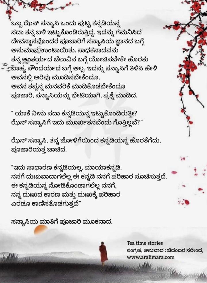 ಕನ್ನಡಿಯ ಔಚಿತ್ಯ : tea time story ನವೆಂಬರ್ 1, 2020 By ಅರಳಿ ಮರ ಝೆನ್ ಸಂನ್ಯಾಸಿ ಕನ್ನಡಿ ಇಟ್ಟುಕೊ಼ಡಿದ್ದು ಯಾಕೆ!? ಇಲ್ಲಿದೆ ಉತ್ತರ… Share this:Tweet Click to email a link to a friend (Opens in new window) Email Click to share on Telegram (Opens in new window) Telegram Click to share on WhatsApp (Opens in new window) WhatsApp ಇನ್ನಷ್ಟು Click to print (Opens in new window) Print Click to share on Reddit (Opens in new window) Reddit Share on TumblrLike ಲೋಡ್ ಆಗುತ್ತಿದೆ... Related About ಅರಳಿ ಮರ ಆಧ್ಯಾತ್ಮ, ವ್ಯಕ್ತಿತ್ವ ವಿಕಸನ ಮತ್ತು ಜೀವನ ಶೈಲಿ