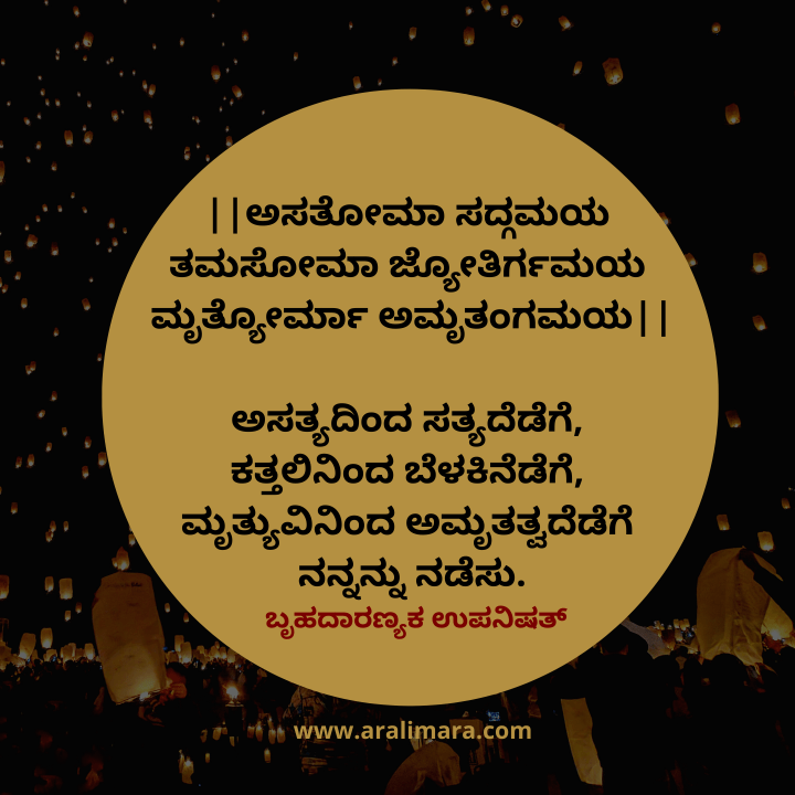 “ಅಸತ್ಯದಿಂದ ಸತ್ಯದೆಡೆಗೆ, ಕತ್ತಲಿನಿಂದ ಬೆಳಕಿನೆಡೆಗೆ, ಮೃತ್ಯುವಿನಿಂದ ಅಮೃತತ್ವದೆಡೆಗೆ ನನ್ನನ್ನು ನಡೆಸು” ಅನ್ನುತ್ತದೆ ಬೃಹದಾರಣ್ಯಕ ಉಪನಿಷತ್.