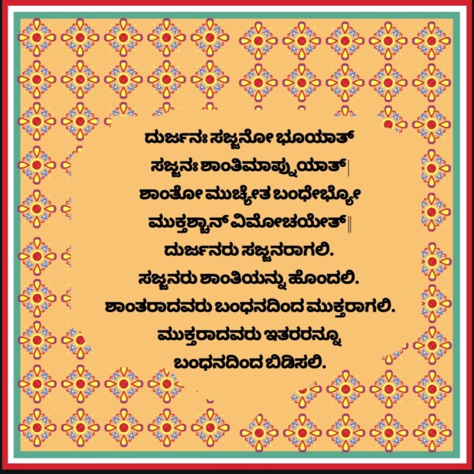 ದುರ್ಜನರು ಸಜ್ಜನರಾಗಲಿ. ಸಜ್ಜನರು ಶಾಂತಿಯನ್ನು ಹೊಂದಲಿ. ಶಾಂತರಾದವರು ಬಂಧನದಿಂದ ಮುಕ್ತರಾಗಲಿ. ಮುಕ್ತರಾದವರು ಇತರರನ್ನೂ ಬಂಧನದಿಂದ ಬಿಡಿಸಲಿ.