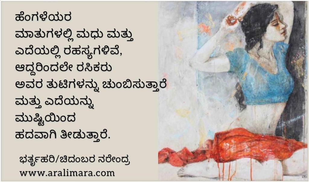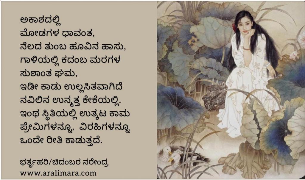 ಶೃಂಗಾರ ಶತಕದಿಂದ 3 ಹೂಬಾಣಗಳು… ನವೆಂಬರ್ 22, 2020 By ಅರಳಿ ಮರ ಆಕರ: ಭರ್ತೃಹರಿಯ ಶೃಂಗಾರ ಶತಕ | ರಚನೆ : ಚಿದಂಬರ ನರೇಂದ್ರ 2 3 Share this:Tweet Click to email a link to a friend (Opens in new window) Email Click to share on Telegram (Opens in new window) Telegram Click to share on WhatsApp (Opens in new window) WhatsApp ಇನ್ನಷ್ಟು Click to print (Opens in new window) Print Click to share on Reddit (Opens in new window) Reddit Share on TumblrLike ಲೋಡ್ ಆಗುತ್ತಿದೆ... Related About ಅರಳಿ ಮರ ಆಧ್ಯಾತ್ಮ, ವ್ಯಕ್ತಿತ್ವ ವಿಕಸನ ಮತ್ತು ಜೀವನ ಶೈಲಿ