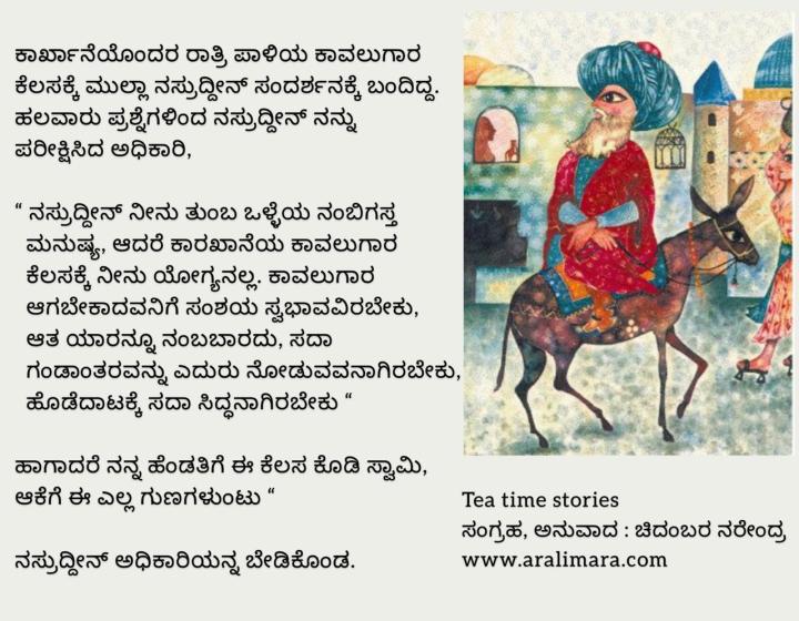 ಕಾವಲು ಕಾಯುವ ಕೆಲಸ ನನ್ನ ಹೆಂಡತಿಗೆ ಕೊಡಿ ಅಂದಿದ್ಯಾಕೆ ನಸ್ರುದ್ದೀನ್!? ಈ ಚಿಕ್ಕಥೆ ಓದಿ… | ಸಂಗ್ರಹ ಮತ್ತು ಅನುವಾದ : ಚಿದಂಬರ ನರೇಂದ್ರ