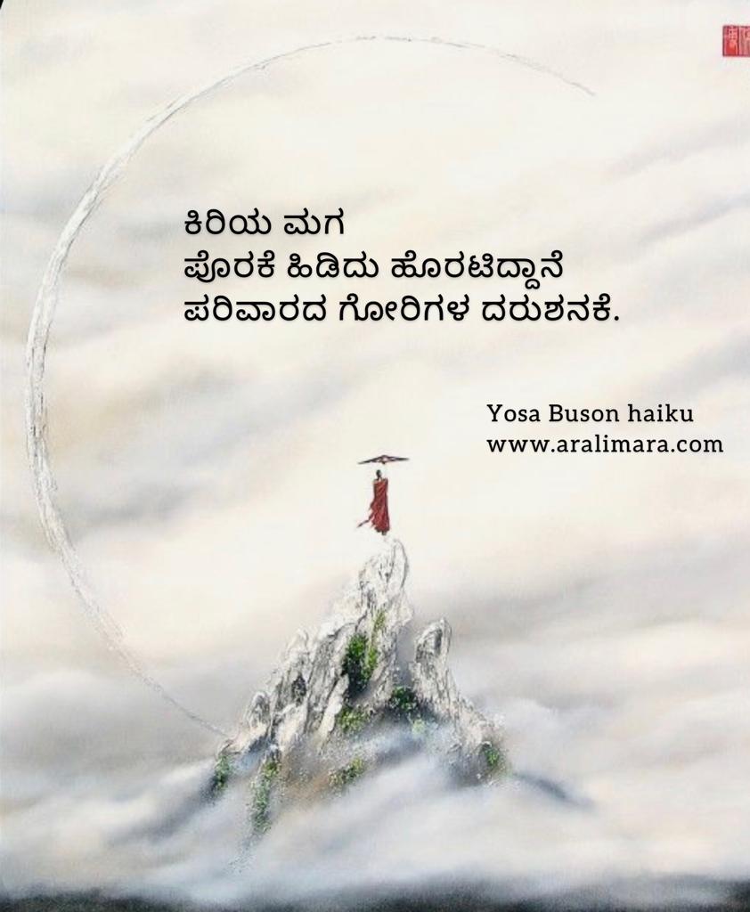 ಬೂಸಾನ್ ಬೆರಗಿನ ಹನಿ ‘ಹಾಯ್ಕು’ಗಳು ನವೆಂಬರ್ 28, 2020 By ಅರಳಿ ಮರ ಹಾಯ್ಕು ಕವಿ ಬೂಸಾನ್’ನ ಬೆರಗಿನ ಹನಿಯಂಥ ಹಾಯ್ಕುಗಳು ಇಲ್ಲಿವೆ. ಸಂಗ್ರಹ ಮತ್ತು ಅನುವಾದ: ಚಿದಂಬರ ನರೇಂದ್ರ 2 3 4 5 6 Share this:Tweet Click to email a link to a friend (Opens in new window) Email Click to share on Telegram (Opens in new window) Telegram Click to share on WhatsApp (Opens in new window) WhatsApp ಇನ್ನಷ್ಟು Click to print (Opens in new window) Print Click to share on Reddit (Opens in new window) Reddit Share on TumblrLike ಲೋಡ್ ಆಗುತ್ತಿದೆ... Related About ಅರಳಿ ಮರ ಆಧ್ಯಾತ್ಮ, ವ್ಯಕ್ತಿತ್ವ ವಿಕಸನ ಮತ್ತು ಜೀವನ ಶೈಲಿ