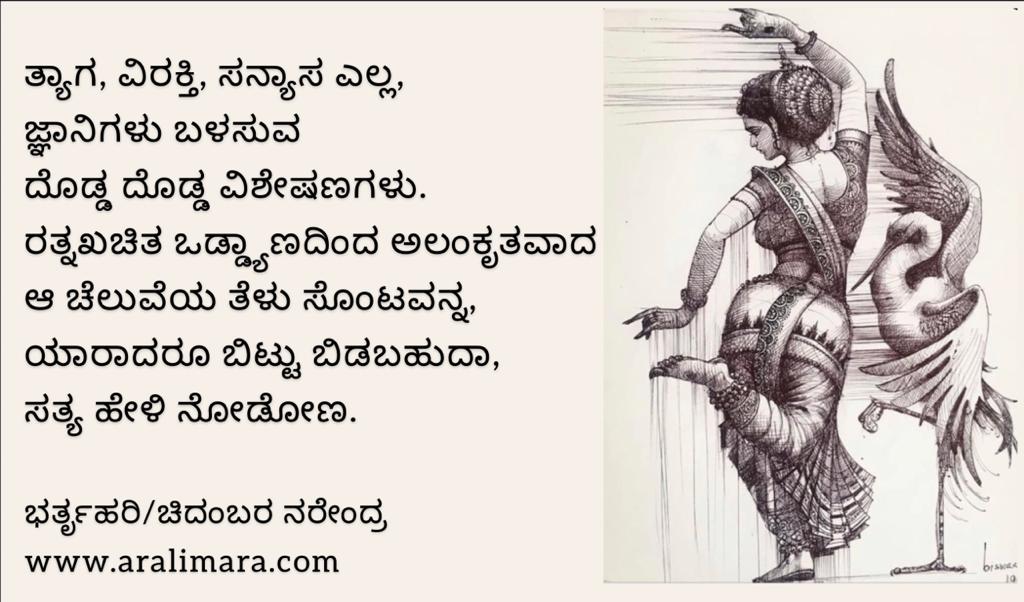 ಶೃಂಗಾರ ಶತಕದಿಂದ ಮೂರು ಚಿತ್ರಿಕೆಗಳು ಡಿಸೆಂಬರ್ 1, 2020 By ಅರಳಿ ಮರ ಆಕರ: ಭರ್ತೃಹರಿಯ ಶೃಂಗಾರ ಶತಕ | ಕನ್ನಡಕ್ಕೆ : ಚಿದಂಬರ ನರೇಂದ್ರ 2 3 Share this:Tweet Click to email a link to a friend (Opens in new window) Email Click to share on Telegram (Opens in new window) Telegram Click to share on WhatsApp (Opens in new window) WhatsApp ಇನ್ನಷ್ಟು Click to print (Opens in new window) Print Click to share on Reddit (Opens in new window) Reddit Share on TumblrLike ಲೋಡ್ ಆಗುತ್ತಿದೆ... Related About ಅರಳಿ ಮರ ಆಧ್ಯಾತ್ಮ, ವ್ಯಕ್ತಿತ್ವ ವಿಕಸನ ಮತ್ತು ಜೀವನ ಶೈಲಿ