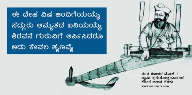 ಕಬೀರ ಬೀರಿದ ಬೆಳಕು : 6 ಚಿತ್ರಿಕೆಗಳು ಡಿಸೆಂಬರ್ 2, 2020 By ಅರಳಿ ಮರ ಮೂಲ: ಸಂತ ಕಬೀರರ ದೋಹೆಗಳು । ಭಾವಾನುವಾದ : ಸ್ವಾಮಿ ಪುರುಷೋತ್ತಮಾನಂದ । ಆಕರ ಕೃಪೆ: ರಾಮಕೃಷ್ಣ ಮಿಷನ್ 1 2 3 4 5 6 Share this:Tweet Click to email a link to a friend (Opens in new window) Email Click to share on Telegram (Opens in new window) Telegram Click to share on WhatsApp (Opens in new window) WhatsApp ಇನ್ನಷ್ಟು Click to print (Opens in new window) Print Click to share on Reddit (Opens in new window) Reddit Share on TumblrLike ಲೋಡ್ ಆಗುತ್ತಿದೆ... Related About ಅರಳಿ ಮರ ಆಧ್ಯಾತ್ಮ, ವ್ಯಕ್ತಿತ್ವ ವಿಕಸನ ಮತ್ತು ಜೀವನ ಶೈಲಿ
