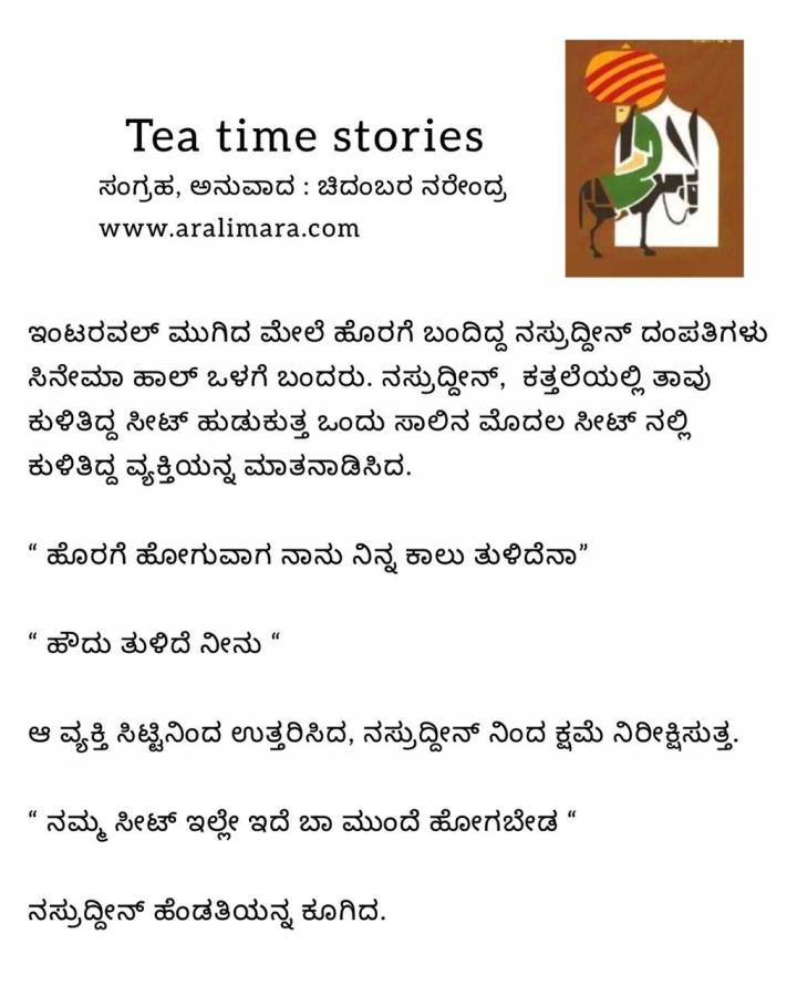 ಚಾಲಾಕಿ ನಸ್ರುದ್ದೀನ್ : Tea time story ಜನವರಿ 7, 2021 By ಅರಳಿ ಮರ Share this:Tweet Click to email a link to a friend (Opens in new window) Email Click to share on Telegram (Opens in new window) Telegram Click to share on WhatsApp (Opens in new window) WhatsApp ಇನ್ನಷ್ಟು Click to print (Opens in new window) Print Click to share on Reddit (Opens in new window) Reddit Share on TumblrLike ಲೋಡ್ ಆಗುತ್ತಿದೆ... Related About ಅರಳಿ ಮರ ಆಧ್ಯಾತ್ಮ, ವ್ಯಕ್ತಿತ್ವ ವಿಕಸನ ಮತ್ತು ಜೀವನ ಶೈಲಿ