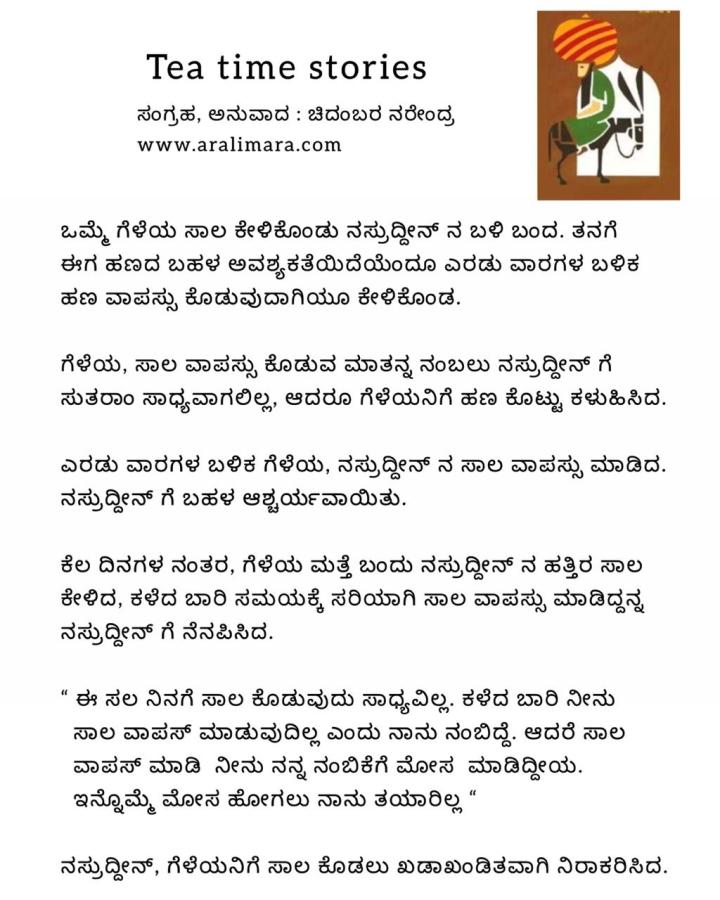ನಂಬಿಕೆಗೆ ಮೋಸ! : Tea time story ಜನವರಿ 20, 2021 By ಅರಳಿ ಮರ Share this:Tweet Click to email a link to a friend (Opens in new window) Email Click to share on Telegram (Opens in new window) Telegram Click to share on WhatsApp (Opens in new window) WhatsApp ಇನ್ನಷ್ಟು Click to print (Opens in new window) Print Click to share on Reddit (Opens in new window) Reddit Share on TumblrLike ಲೋಡ್ ಆಗುತ್ತಿದೆ... Related About ಅರಳಿ ಮರ ಆಧ್ಯಾತ್ಮ, ವ್ಯಕ್ತಿತ್ವ ವಿಕಸನ ಮತ್ತು ಜೀವನ ಶೈಲಿ