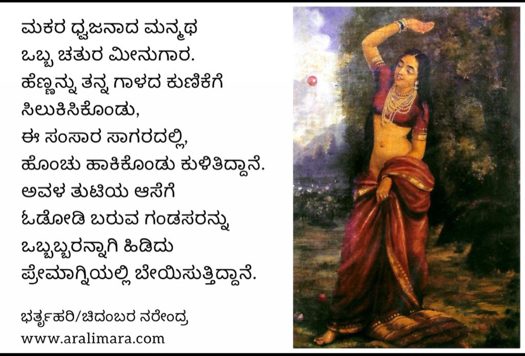 ಮನ್ಮಥ, ಚತುರ ಮೀನುಗಾರ! : ಶೃಂಗಾರ ಶತಕದಿಂದ… ಫೆಬ್ರವರಿ 14, 2021 By ಅರಳಿ ಮರ ಆಕರ: ಭರ್ತೃಹರಿಯ ಶೃಂಗಾರ ಶತಕ | ಕನ್ನಡಕ್ಕೆ : ಚಿದಂಬರ ನರೇಂದ್ರ 2 3 Share this:Tweet Email a link to a friend (Opens in new window) Email Share on Telegram (Opens in new window) Telegram Share on WhatsApp (Opens in new window) WhatsApp ಇನ್ನಷ್ಟು ಮುದ್ರಿಸಿ (Opens in new window) Print Share on Reddit (Opens in new window) Reddit Share on TumblrLike ಲೋಡ್ ಆಗುತ್ತಿದೆ... Related About ಅರಳಿ ಮರ ಆಧ್ಯಾತ್ಮ, ವ್ಯಕ್ತಿತ್ವ ವಿಕಸನ ಮತ್ತು ಜೀವನ ಶೈಲಿ