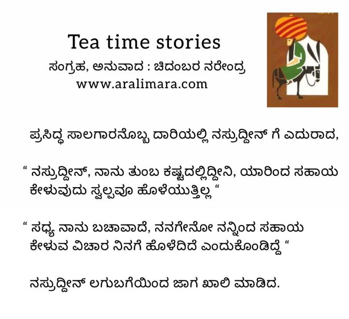 ಸಾಲಗಾರ ಮತ್ತು ನಸ್ರುದ್ದೀನ್ : Tea time stories ಫೆಬ್ರವರಿ 25, 2021 By ಅರಳಿ ಮರ Share this:Tweet Click to email a link to a friend (Opens in new window) Email Click to share on Telegram (Opens in new window) Telegram Click to share on WhatsApp (Opens in new window) WhatsApp ಇನ್ನಷ್ಟು Click to print (Opens in new window) Print Click to share on Reddit (Opens in new window) Reddit Share on TumblrLike ಲೋಡ್ ಆಗುತ್ತಿದೆ... Related About ಅರಳಿ ಮರ ಆಧ್ಯಾತ್ಮ, ವ್ಯಕ್ತಿತ್ವ ವಿಕಸನ ಮತ್ತು ಜೀವನ ಶೈಲಿ
