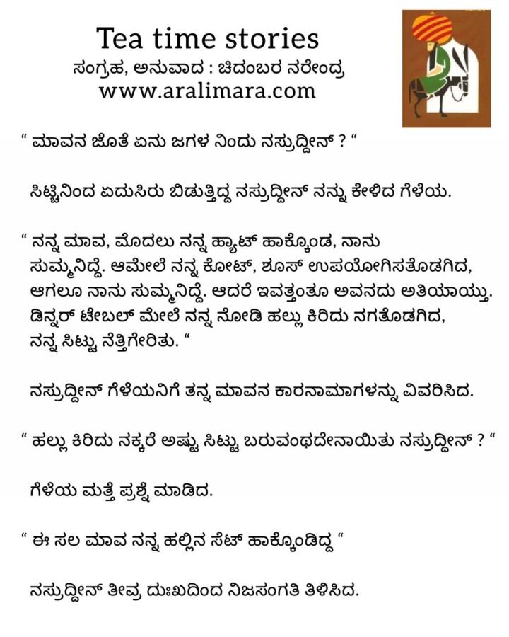ಮಾವ ನಕ್ಕರೆ ಸಿಟ್ಟು ಯಾಕೆ? Tea time story ಏಪ್ರಿಲ್ 17, 2021 By ಅರಳಿ ಮರ Share this:Tweet Click to email a link to a friend (Opens in new window) Email Click to share on Telegram (Opens in new window) Telegram Click to share on WhatsApp (Opens in new window) WhatsApp ಇನ್ನಷ್ಟು Click to print (Opens in new window) Print Click to share on Reddit (Opens in new window) Reddit Share on TumblrLike ಲೋಡ್ ಆಗುತ್ತಿದೆ... Related About ಅರಳಿ ಮರ ಆಧ್ಯಾತ್ಮ, ವ್ಯಕ್ತಿತ್ವ ವಿಕಸನ ಮತ್ತು ಜೀವನ ಶೈಲಿ