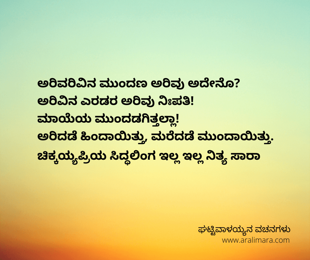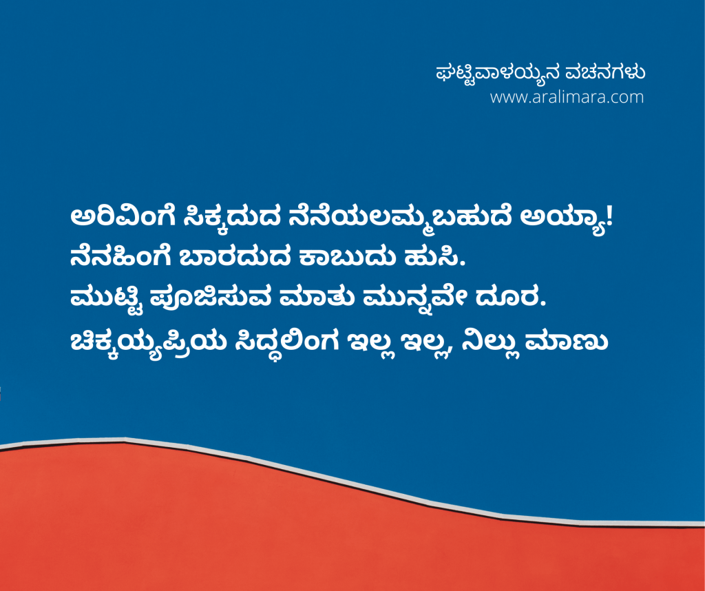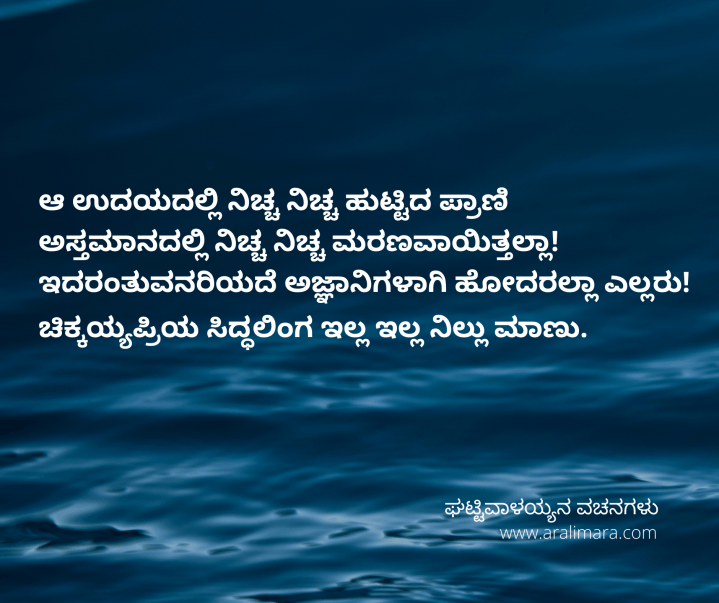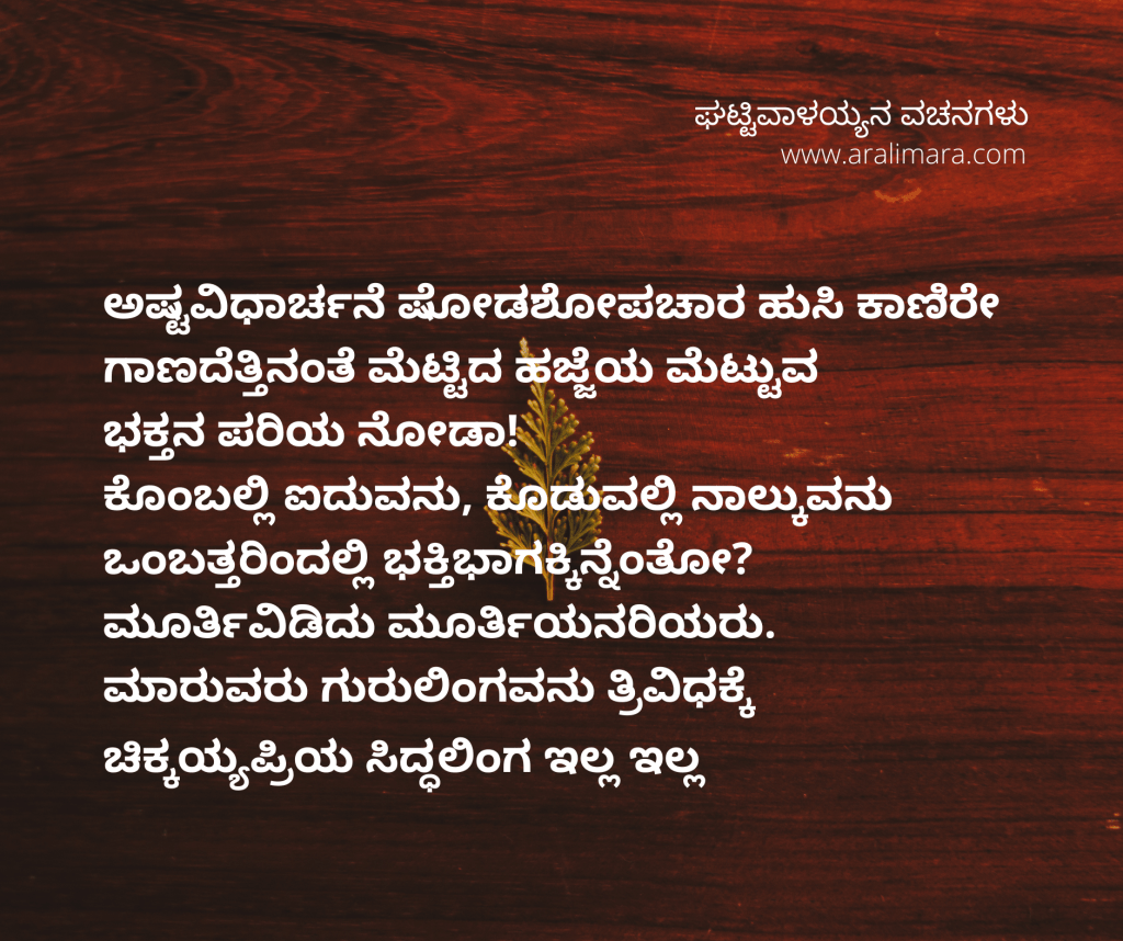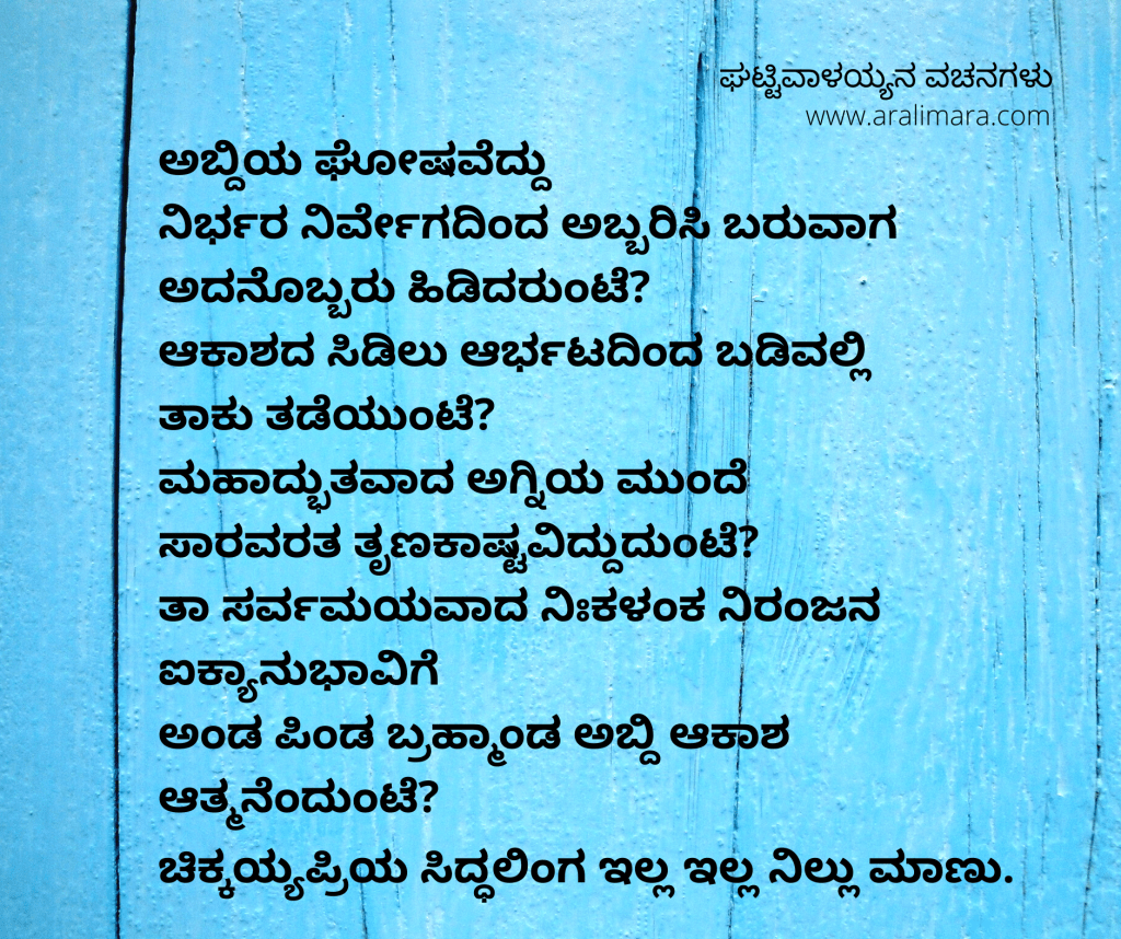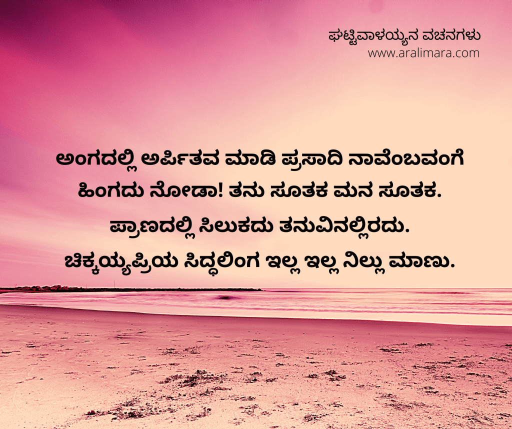 ಘಟ್ಟಿವಾಳಯ್ಯನ ವಚನಗಳು ಏಪ್ರಿಲ್ 26, 2021 By ಅರಳಿ ಮರ ಶಿವ ಶರಣ, ವಚನಕಾರ ಘಟ್ಟಿವಾಳಯ್ಯನವರ 6 ವಚನಗಳು ಇಲ್ಲಿವೆ… 2 3 4 5 6 Share this:Tweet Click to email a link to a friend (Opens in new window) Email Click to share on Telegram (Opens in new window) Telegram Click to share on WhatsApp (Opens in new window) WhatsApp ಇನ್ನಷ್ಟು Click to print (Opens in new window) Print Click to share on Reddit (Opens in new window) Reddit Share on TumblrLike ಲೋಡ್ ಆಗುತ್ತಿದೆ... Related About ಅರಳಿ ಮರ ಆಧ್ಯಾತ್ಮ, ವ್ಯಕ್ತಿತ್ವ ವಿಕಸನ ಮತ್ತು ಜೀವನ ಶೈಲಿ