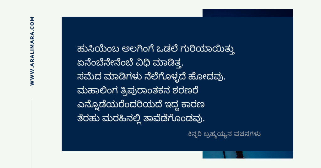 ಕಿನ್ನರಿ ಬ್ರಹ್ಮಯ್ಯನು ‘ಮಹಾಲಿಂಗ ತ್ರಿಪುರಾಂತಕ’ ಅಂಕಿತದಲ್ಲಿ ವಚನಗಳನ್ನು ರಚಿಸಿದ್ದು, ಸದ್ಯ 18 ದೊರೆತಿವೆ. ಅವುಗಳಲ್ಲಿ ಮಹಾದೇವಿಯಕ್ಕನ ಜೊತೆಗೆ ನಡೆಸಿದ ಸಂವಾದ, ಶಿವನ ಮಹಿಮೆ, ಬಸವಾದಿ ಶರಣರ ವರ್ಣನೆ ಕಂಡುಬರುತ್ತದೆ. ಮಹಾದೇವಿಯಕ್ಕನ ವೈರಾಗ್ಯವನ್ನು ಒರೆಹಚ್ಚಿ ನೋಡಿದವನು ಎಂದು ಹೇಳಲಾಗಿದೆ । ಮಾಹಿತಿ ಕೃಪೆ : https://lingayatreligion.com/