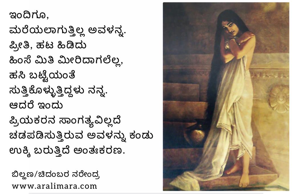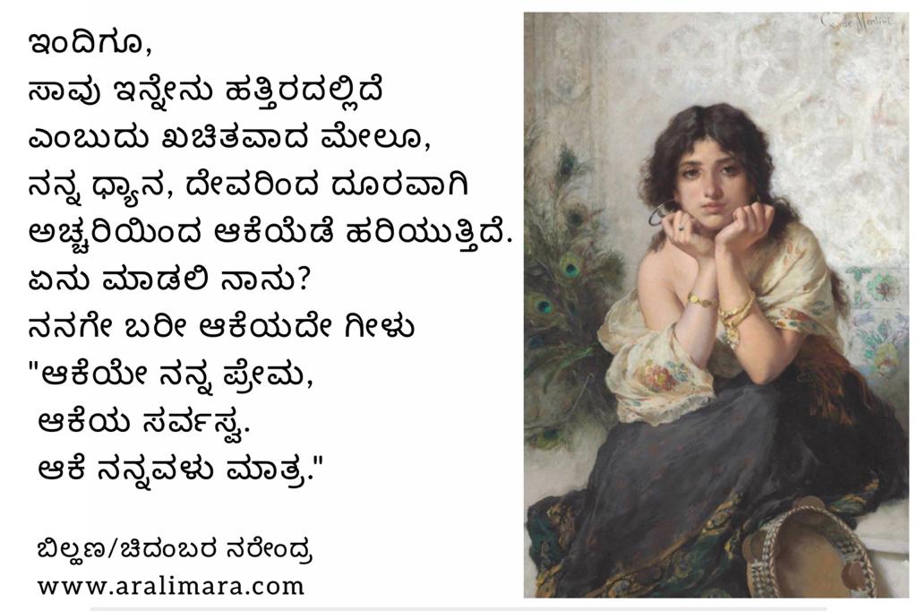 ಆಕೆ ನನ್ನವಳು ಮಾತ್ರ… | ಬಿಲ್ಹಣನ ಶೃಂಗಾರ ಕಾವ್ಯ ಜೂನ್ 13, 2021 By ಅರಳಿ ಮರ ಆಕರ: ಬಿಲ್ಹಣನ ಚೌರಪಂಚಾಶಿಕ | ರಚನೆ: ಚಿದಂಬರ ನರೇಂದ್ರ 2 3 Share this:Tweet Click to email a link to a friend (Opens in new window) Email Click to share on Telegram (Opens in new window) Telegram Click to share on WhatsApp (Opens in new window) WhatsApp ಇನ್ನಷ್ಟು Click to print (Opens in new window) Print Click to share on Reddit (Opens in new window) Reddit Share on TumblrLike ಲೋಡ್ ಆಗುತ್ತಿದೆ... Related About ಅರಳಿ ಮರ ಆಧ್ಯಾತ್ಮ, ವ್ಯಕ್ತಿತ್ವ ವಿಕಸನ ಮತ್ತು ಜೀವನ ಶೈಲಿ