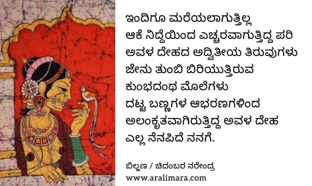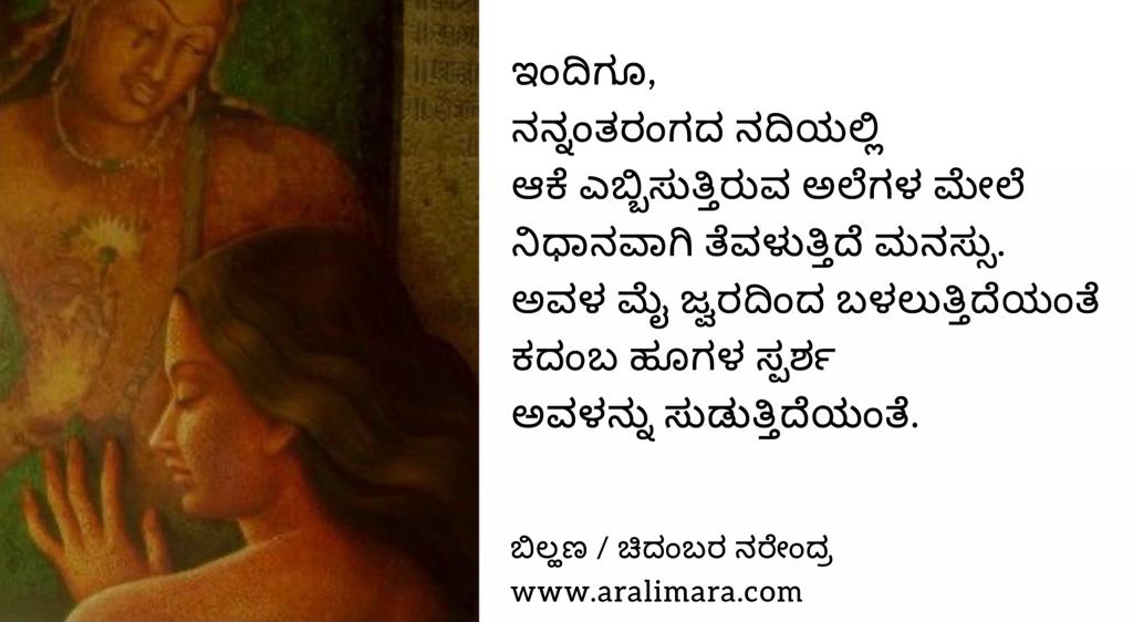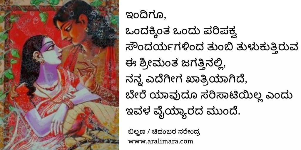 ಎದೆಗೀಗ ಖಾತ್ರಿಯಾಗಿದೆ : ಬಿಲ್ಹಣನ ಶೃಂಗಾರ ಕಾವ್ಯ ಜುಲೈ 25, 2021 By ಅರಳಿ ಮರ ಆಕರ: ಬಿಲ್ಹಣನ ಚೌರಪಂಚಾಶಿಕ | ರಚನೆ: ಚಿದಂಬರ ನರೇಂದ್ರ 2 3 4 Share this:Tweet Click to email a link to a friend (Opens in new window) Email Click to share on Telegram (Opens in new window) Telegram Click to share on WhatsApp (Opens in new window) WhatsApp ಇನ್ನಷ್ಟು Click to print (Opens in new window) Print Click to share on Reddit (Opens in new window) Reddit Share on TumblrLike ಲೋಡ್ ಆಗುತ್ತಿದೆ... Related About ಅರಳಿ ಮರ ಆಧ್ಯಾತ್ಮ, ವ್ಯಕ್ತಿತ್ವ ವಿಕಸನ ಮತ್ತು ಜೀವನ ಶೈಲಿ