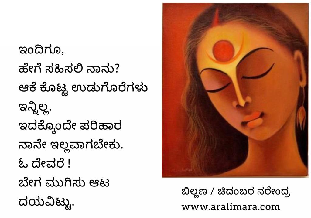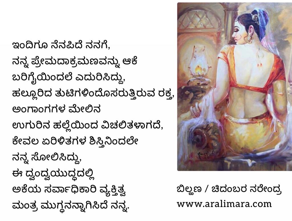 ಬಿಲ್ಹಣನ ಶೃಂಗಾರ ಕಾವ್ಯ, ಕೊನೆ ಕಂತು ಆಗಷ್ಟ್ 1, 2021 By ಅರಳಿ ಮರ ಆಕರ: ಬಿಲ್ಹಣನ ಚೌರಪಂಚಾಶಿಕ | ಕನ್ನಡಕ್ಕೆ : ಚಿದಂಬರ ನರೇಂದ್ರ 2 3 4 Share this:Tweet Click to email a link to a friend (Opens in new window) Email Click to share on Telegram (Opens in new window) Telegram Click to share on WhatsApp (Opens in new window) WhatsApp ಇನ್ನಷ್ಟು Click to print (Opens in new window) Print Click to share on Reddit (Opens in new window) Reddit Share on TumblrLike ಲೋಡ್ ಆಗುತ್ತಿದೆ... Related About ಅರಳಿ ಮರ ಆಧ್ಯಾತ್ಮ, ವ್ಯಕ್ತಿತ್ವ ವಿಕಸನ ಮತ್ತು ಜೀವನ ಶೈಲಿ