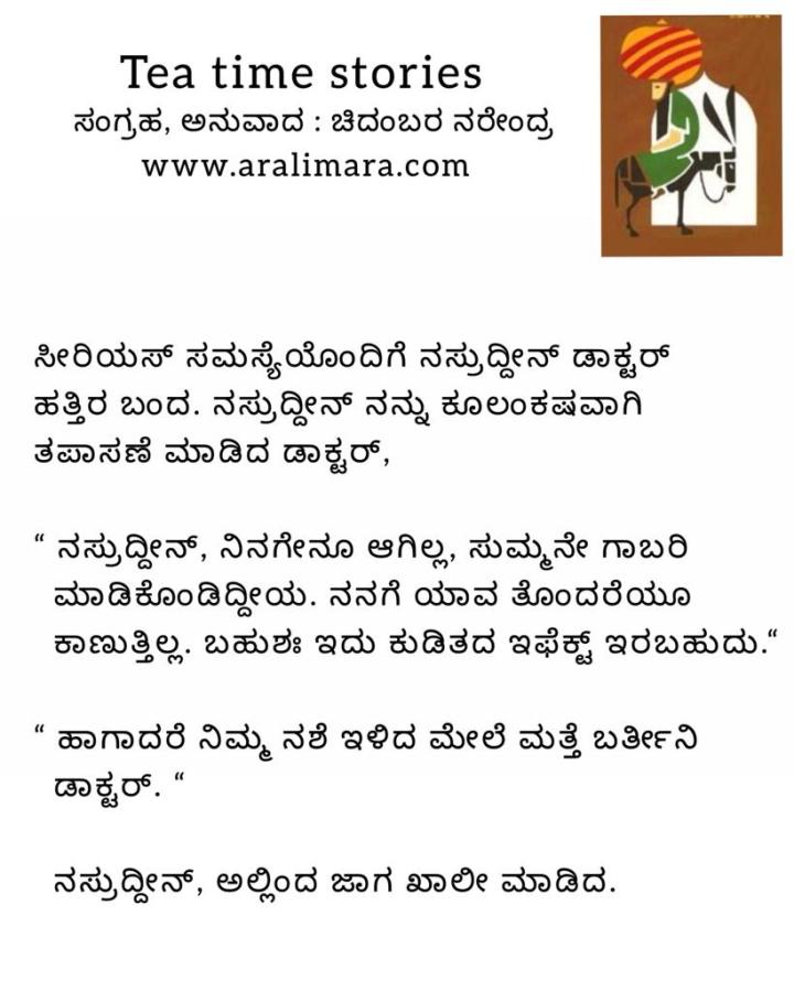 ಪೇಶೆಂಟ್ ನಸ್ರುದ್ದೀನ್ : tea time story ಆಗಷ್ಟ್ 30, 2021 By ಅರಳಿ ಮರ Share this:Tweet Click to email a link to a friend (Opens in new window) Email Click to share on Telegram (Opens in new window) Telegram Click to share on WhatsApp (Opens in new window) WhatsApp ಇನ್ನಷ್ಟು Click to print (Opens in new window) Print Click to share on Reddit (Opens in new window) Reddit Share on TumblrLike ಲೋಡ್ ಆಗುತ್ತಿದೆ... Related About ಅರಳಿ ಮರ ಆಧ್ಯಾತ್ಮ, ವ್ಯಕ್ತಿತ್ವ ವಿಕಸನ ಮತ್ತು ಜೀವನ ಶೈಲಿ