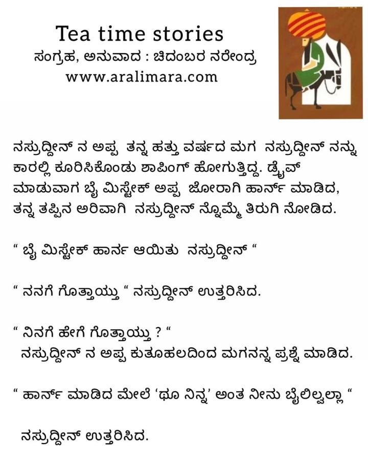 ಬಾಲಕ ನಸ್ರುದ್ದೀನನ ಜವಾಬು! : tea time story ಸೆಪ್ಟೆಂಬರ್ 2, 2021 By ಅರಳಿ ಮರ Share this:Tweet Email a link to a friend (Opens in new window) Email Share on Telegram (Opens in new window) Telegram Share on WhatsApp (Opens in new window) WhatsApp ಇನ್ನಷ್ಟು ಮುದ್ರಿಸಿ (Opens in new window) Print Share on Reddit (Opens in new window) Reddit Share on TumblrLike ಲೋಡ್ ಆಗುತ್ತಿದೆ... Related About ಅರಳಿ ಮರ ಆಧ್ಯಾತ್ಮ, ವ್ಯಕ್ತಿತ್ವ ವಿಕಸನ ಮತ್ತು ಜೀವನ ಶೈಲಿ