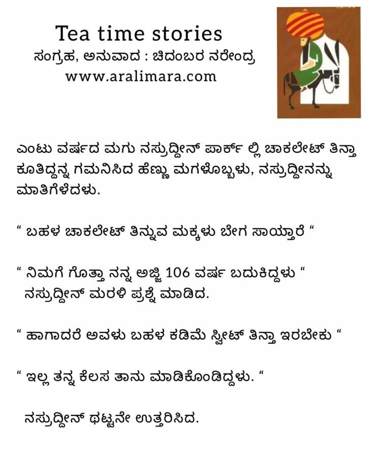 ಬಾಲಕ ನಸ್ರುದ್ದೀನನ ಸಲಹೆ: tea time story ಸೆಪ್ಟೆಂಬರ್ 5, 2021 By ಅರಳಿ ಮರ Share this:Tweet Click to email a link to a friend (Opens in new window) Email Click to share on Telegram (Opens in new window) Telegram Click to share on WhatsApp (Opens in new window) WhatsApp ಇನ್ನಷ್ಟು Click to print (Opens in new window) Print Click to share on Reddit (Opens in new window) Reddit Share on TumblrLike ಲೋಡ್ ಆಗುತ್ತಿದೆ... Related About ಅರಳಿ ಮರ ಆಧ್ಯಾತ್ಮ, ವ್ಯಕ್ತಿತ್ವ ವಿಕಸನ ಮತ್ತು ಜೀವನ ಶೈಲಿ