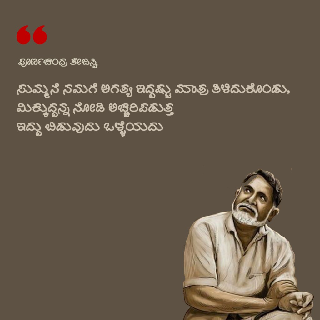 ಕನ್ನಡದ ಹೊಸತಲೆಮಾರಿನಲ್ಲಿ ಓದಿನ ಅಭಿರುಚಿಯನ್ನು ಬೆಳೆಸಿದ, ಚಿಂತನೆಗೆ ಹಚ್ಚಿದ ಬರಹಗಾರರಲ್ಲಿ ಕೆ.ಪಿ.ಪೂರ್ಣಚಂದ್ರ ತೇಜಸ್ವಿ ಪ್ರಮುಖರು. ಇಂದು ದಿವಂಗತ ತೇಜಸ್ವಿಯವರ ಹುಟ್ಟುದಿನ. ಈ ಸಂದರ್ಭದಲ್ಲಿ ತೇಜಸ್ವಿಯವರ ಕೆಲವು ಹೊಳಹುಗಳು ಇಲ್ಲಿವೆ.