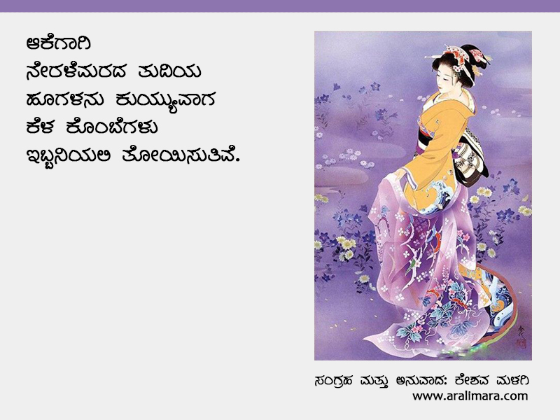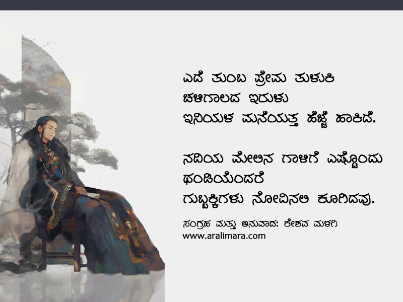 ಜಪಾನಿ ಪ್ರೇಮ ಪದ್ಯಗಳು, ಕನ್ನಡದಲ್ಲಿ… ಸೆಪ್ಟೆಂಬರ್ 11, 2021 By ಅರಳಿ ಮರ ಮೂಲ: ವಿವಿಧ ಜಪಾನೀ ಕವಿಗಳು । ಕನ್ನಡಕ್ಕೆ: ಕೇಶವ ಮಳಗಿ 1 2 3 4 5 6 7 8 9 10 Share this:Tweet Click to email a link to a friend (Opens in new window) Email Click to share on Telegram (Opens in new window) Telegram Click to share on WhatsApp (Opens in new window) WhatsApp ಇನ್ನಷ್ಟು Click to print (Opens in new window) Print Click to share on Reddit (Opens in new window) Reddit Share on TumblrLike ಲೋಡ್ ಆಗುತ್ತಿದೆ... Related About ಅರಳಿ ಮರ ಆಧ್ಯಾತ್ಮ, ವ್ಯಕ್ತಿತ್ವ ವಿಕಸನ ಮತ್ತು ಜೀವನ ಶೈಲಿ