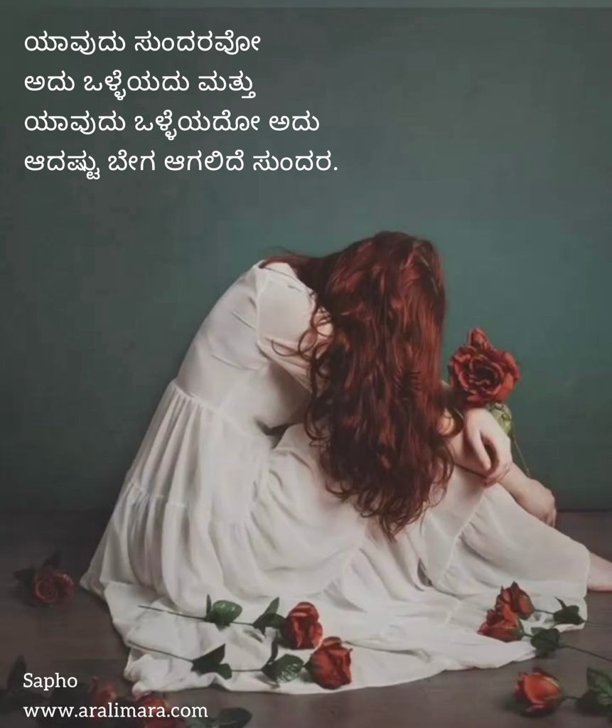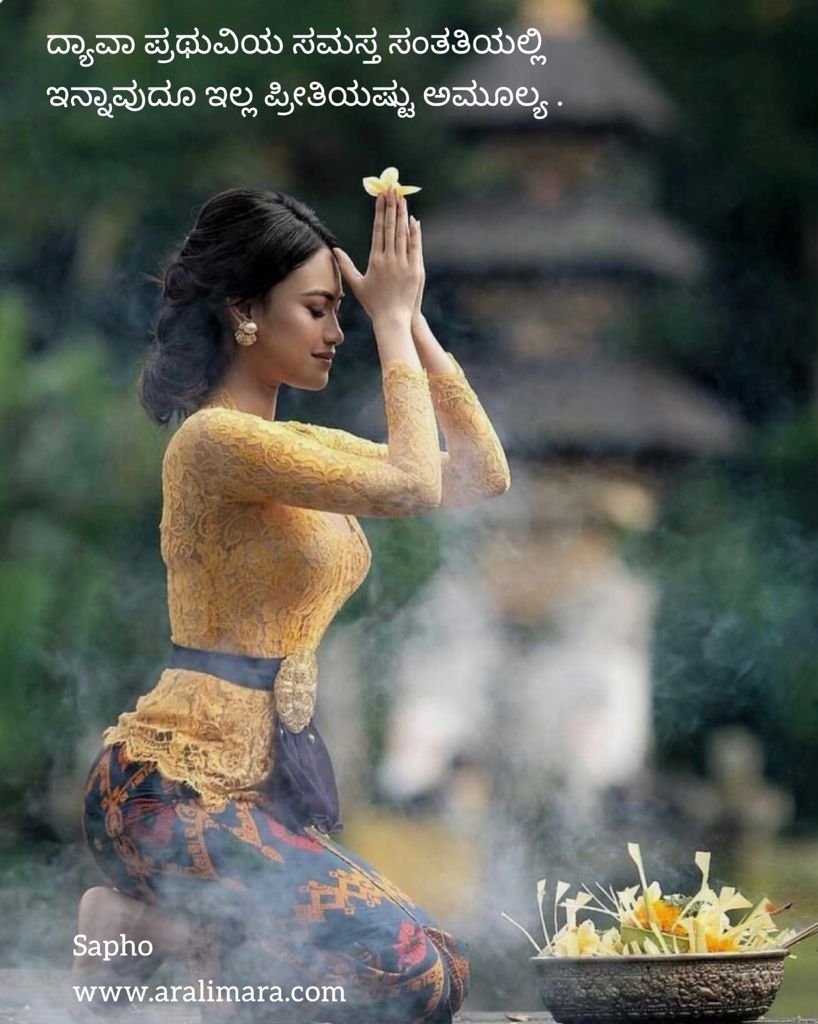 ಸಾಫೋ ಗೀತ’ಚಿತ್ರ’ : tea time story ಸೆಪ್ಟೆಂಬರ್ 21, 2021 By ಅರಳಿ ಮರ ಮೂಲ: ಸಾಫೋ (ಗ್ರೀಕ್ ಕವಿ, ಭಾವಗೀತೆ ಬರಹಗಾರ್ತಿ) | ಕನ್ನಡಕ್ಕೆ : ಚಿದಂಬರ ನರೇಂದ್ರ 2 3 4 5 6 Share this:Tweet Click to email a link to a friend (Opens in new window) Email Click to share on Telegram (Opens in new window) Telegram Click to share on WhatsApp (Opens in new window) WhatsApp ಇನ್ನಷ್ಟು Click to print (Opens in new window) Print Click to share on Reddit (Opens in new window) Reddit Share on TumblrLike ಲೋಡ್ ಆಗುತ್ತಿದೆ... Related About ಅರಳಿ ಮರ ಆಧ್ಯಾತ್ಮ, ವ್ಯಕ್ತಿತ್ವ ವಿಕಸನ ಮತ್ತು ಜೀವನ ಶೈಲಿ