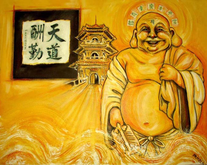 ತಾಂಗ್ ವಂಶದ ಸಾಮ್ರಾಜ್ಯದಲ್ಲಿ ಹೊಟೈ ಎನ್ನುವ ಸ್ಥೂಲಕಾಯದ ಝೆನ್ ಮಾಸ್ಟರ್ ಇದ್ದ. ಜನ ಅವನನ್ನು ಹ್ಯಾಪಿ ಚಿನ್ಮನ್ ಅಥವಾ ಲಾಫಿಂಗ್ ಬುದ್ಧ ಎಂದೇ ಗುರುತಿಸುತ್ತಿದ್ದರು. ಝೆನ್ ಮಾಸ್ಟರ್ ಹೊಟೈ ಗೆ ತನ್ನನ್ನು ಝೆನ್ ಮಾಸ್ಟರ್ ಎಂದು ಕರೆದುಕೊಳ್ಳುವಲ್ಲಿ , ತನ್ನ ಸುತ್ತ ಶಿಷ್ಯರನ್ನು ಕೂಡಿ ಹಾಕಿಕೊಂಡು ಪಾಠ ಹೇಳುವಲ್ಲಿ ಯಾವ ಆಸಕ್ತಿಯೂ ಇರಲಿಲ್ಲ. ಬದಲಾಗಿ ಮಾಸ್ಟರ್ ಹೊಟೈ ತನ್ನ ಹೆಗಲ ಮೇಲೆ ಹಣ್ಣು, ಸಿಹಿ ತಿಂಡಿಗಳ ಚೀಲ ಹೊತ್ತುಕೊಂಡು ಬೀದಿ ಬೀದಿ ಅಲೆಯುತ್ತಿದ್ದ. ತನ್ನ ಸುತ್ತ ಸೇರಿದ ಮಕ್ಕಳಿಗೆ ಹಣ್ಣು, ಸಿಹಿ ತಿಂಡಿ ಹಂಚುತ್ತಿದ್ದ.