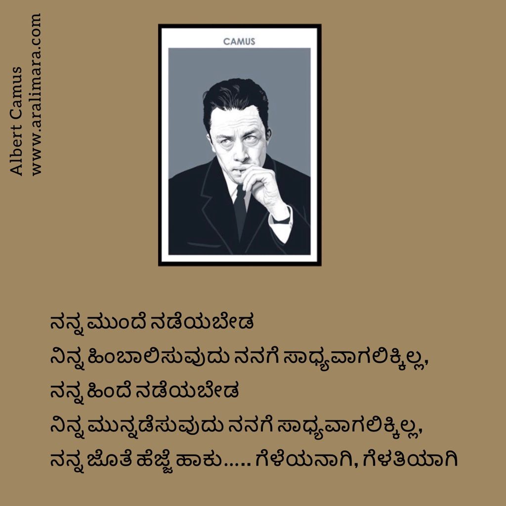 ನೊಬೆಲ್ ಪ್ರಶಸ್ತಿ ವಿಜೇತ ಫ್ರೆಂಚ್ ಫಿಲಾಸಫರ್, ಜರ್ನಲಿಸ್ಟ್ ಮತ್ತು ಆಥರ್ ‘ಆಲ್ಬರ್ಟ್ ಕಮೂ’ ಅವರ ಕೆಲವು ಹೊಳಹುಗಳು ಇಲ್ಲಿವೆ… । ಕನ್ನಡಕ್ಕೆ : ಚಿದಂಬರ ನರೇಂದ್ರ