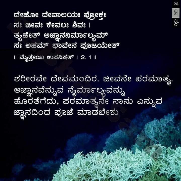 ದೇಹೋ ದೇವಾಲಯಃ ಪ್ರೋಕ್ತಃ ಸಃ ಜೀವಃ ಕೇವಲಃ ಶಿವಃ |