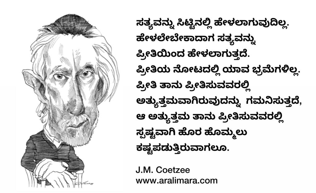 ಸೌತ್ ಆಫ್ರಿಕನ್-ಆಸ್ಟ್ರೇಲಿಯನ್ ಕಾದಂಬರಿಕಾರ, ನೊಬೆಲ್ ಪ್ರಶಸ್ತಿ ಪುರಸ್ಕೃತ ಜೆ ಎಂ ಕೋಟ್ಝೀ ಹೊಳಹುಗಳು, ಇಂದಿನ ಚಿತ್ರಭಿತ್ತಿಯಲ್ಲಿ… | ಸಂಗ್ರಹ ಮತ್ತು ಅನುವಾದ: ಚಿದಂಬರ ನರೇಂದ್ರ