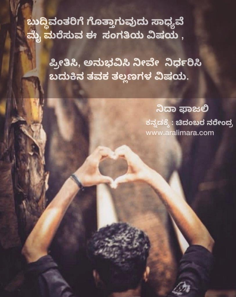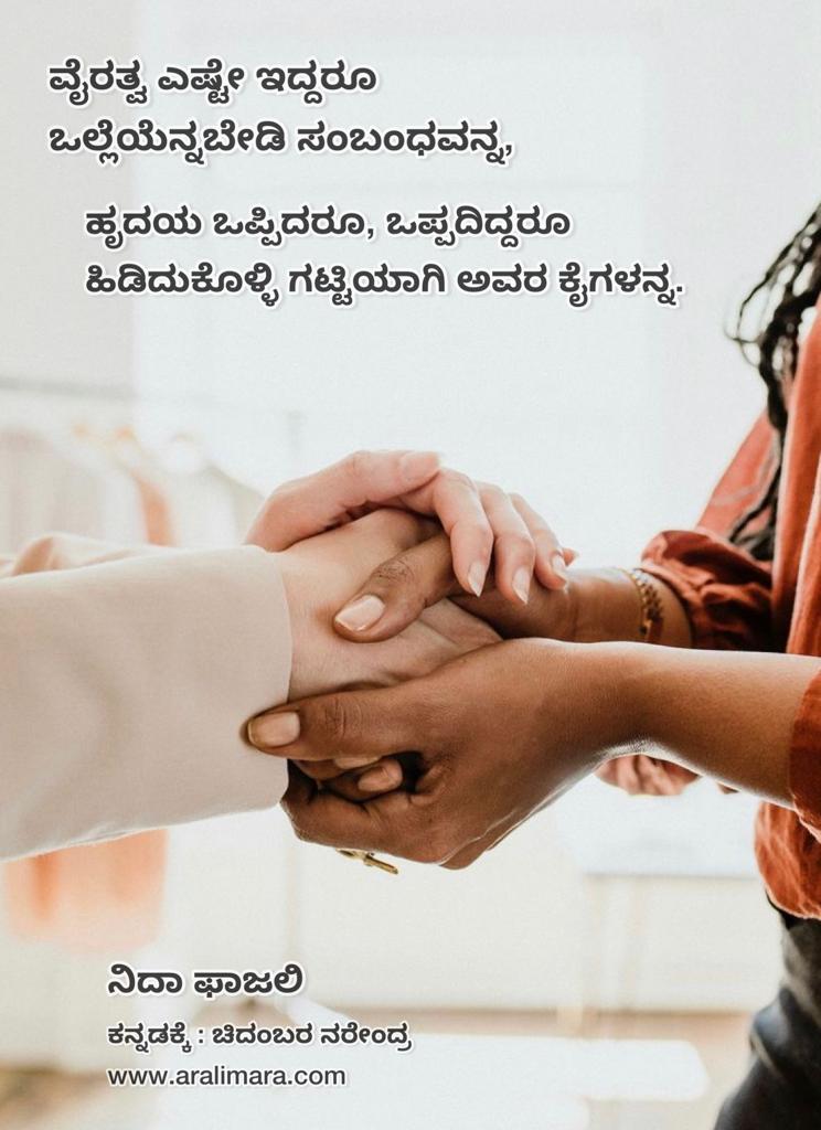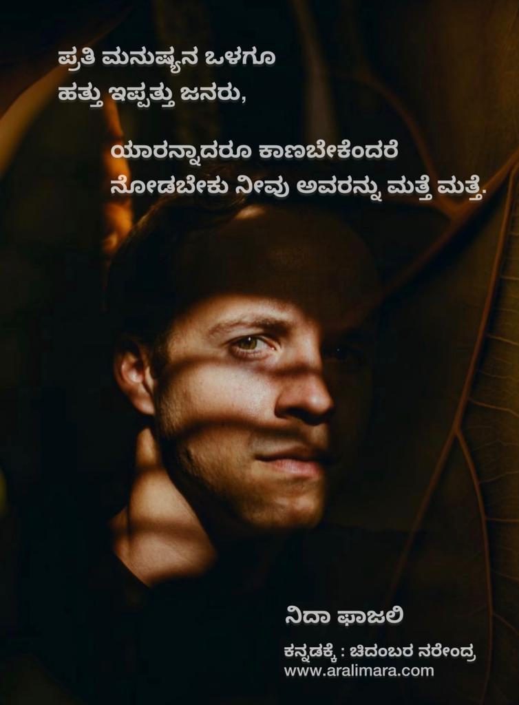 ಚಿತ್ರಭಿತ್ತಿಯಲ್ಲಿ ‘ನಿದಾ’ ಕಾವ್ಯಹನಿ : ಅರಳಿಮರ posters ಡಿಸೆಂಬರ್ 19, 2021 By ಅರಳಿ ಮರ ಹಿಂದಿ ಮತ್ತು ಉರ್ದು ಕವಿ ‘ನಿದಾ ಫಾಜಲಿ’ಯವರ ಕೆಲವು ಕಾವ್ಯಹನಿಗಳು ಇಲ್ಲಿವೆ… 1 2 3 4 5 6 7 Share this:Tweet Click to email a link to a friend (Opens in new window) Email Click to share on Telegram (Opens in new window) Telegram Click to share on WhatsApp (Opens in new window) WhatsApp ಇನ್ನಷ್ಟು Click to print (Opens in new window) Print Click to share on Reddit (Opens in new window) Reddit Share on TumblrLike ಲೋಡ್ ಆಗುತ್ತಿದೆ... Related About ಅರಳಿ ಮರ ಆಧ್ಯಾತ್ಮ, ವ್ಯಕ್ತಿತ್ವ ವಿಕಸನ ಮತ್ತು ಜೀವನ ಶೈಲಿ