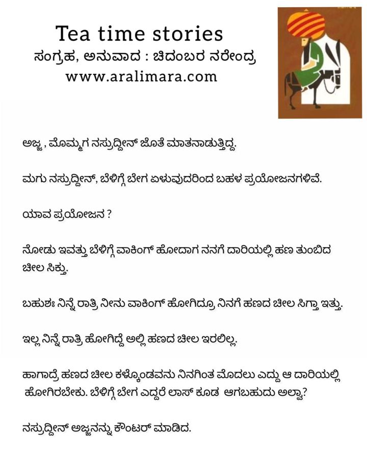 ಬೇಗ ಏಳುವುದರ ಲಾಭ ನಷ್ಟ : Tea time story ಜನವರಿ 5, 2022 By ಅರಳಿ ಮರ Share this:Tweet Click to email a link to a friend (Opens in new window) Email Click to share on Telegram (Opens in new window) Telegram Click to share on WhatsApp (Opens in new window) WhatsApp ಇನ್ನಷ್ಟು Click to print (Opens in new window) Print Click to share on Reddit (Opens in new window) Reddit Share on TumblrLike ಲೋಡ್ ಆಗುತ್ತಿದೆ... Related About ಅರಳಿ ಮರ ಆಧ್ಯಾತ್ಮ, ವ್ಯಕ್ತಿತ್ವ ವಿಕಸನ ಮತ್ತು ಜೀವನ ಶೈಲಿ