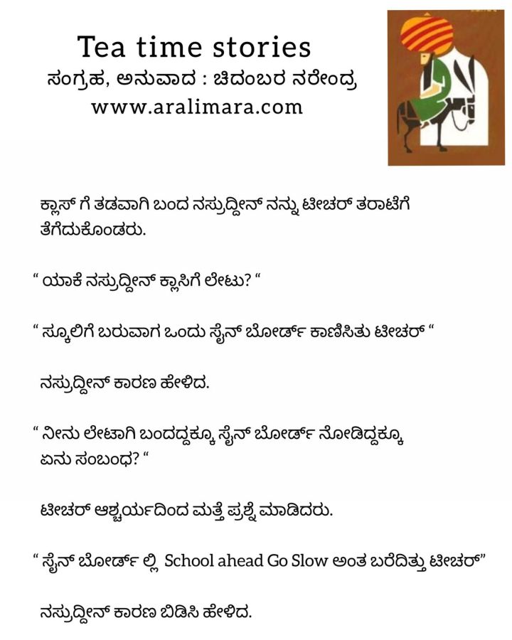 ಛೋಟಾ ನಸ್ರುದ್ದೀನ್ ಮತ್ತು ಸೈನ್ ಬೋರ್ಡ್! : tea time story ಜನವರಿ 7, 2022 By ಅರಳಿ ಮರ Share this:Tweet Click to email a link to a friend (Opens in new window) Email Click to share on Telegram (Opens in new window) Telegram Click to share on WhatsApp (Opens in new window) WhatsApp ಇನ್ನಷ್ಟು Click to print (Opens in new window) Print Click to share on Reddit (Opens in new window) Reddit Share on TumblrLike ಲೋಡ್ ಆಗುತ್ತಿದೆ... Related About ಅರಳಿ ಮರ ಆಧ್ಯಾತ್ಮ, ವ್ಯಕ್ತಿತ್ವ ವಿಕಸನ ಮತ್ತು ಜೀವನ ಶೈಲಿ