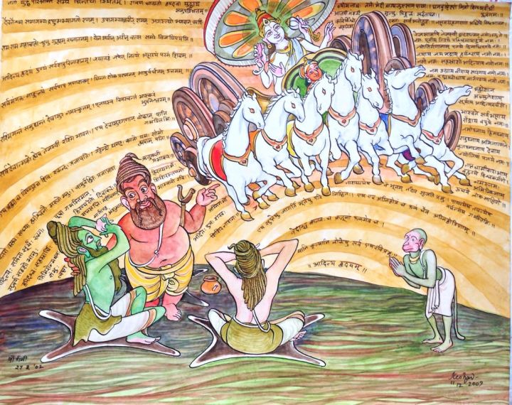ಯುದ್ಧದಲ್ಲಿ ರಾವಣನ ಪಾಳಯದ ಕೈಮೇಲಾಗುತ್ತಾ ವಾನರ ಸೇನೆ ಸಂಕಷ್ಟಕ್ಕೀಡಾಗುತ್ತದೆ. ಆಗ ಶ್ರೀ ರಾಮ, “ರಾವಣನನ್ನು ಕೊಲ್ಲುವುದು ಹೇಗೆ?” ಎಂದು ಯೋಚಿಸತೊಡಗುತ್ತಾನೆ. ಆಗ ಅಲ್ಲಿಗೆ ಬರುವ ಅಗಸ್ತ್ಯ ಮುನಿಗಳು “ರಾಮ, ಈಗ ನಾನು ನಿನಗೆ ಆದಿತ್ಯ ಹೃದಯವನ್ನು ಉಪದೇಶಿಸುತ್ತೇನೆ. ಸ್ವೀಕರಿಸು. ಇದನ್ನು ಪಡೆದ ಮೇಲೆ ನಿನಗೆ ಯಾವ ಬಗೆಯ ಗೊಂದಲವೂ ಉಂಟಾಗುವುದಿಲ್ಲ. ನಿನಗೆ ಆತಂಕವಾದಾಗ, ಗೊಂದಲವಾದಾಗ ಇದನ್ನು ಪಠಿಸು. ಇದು ನಿನಗೆ ರಕ್ಷಣೆಯನ್ನ ಕೊಡುತ್ತದೆ” ಎಂದು ಹೇಳಿ ಆದಿತ್ಯ ಹೃದಯವನ್ನು ಬೋಧಿಸಲು ಆರಂಭಿಸಿದರು.