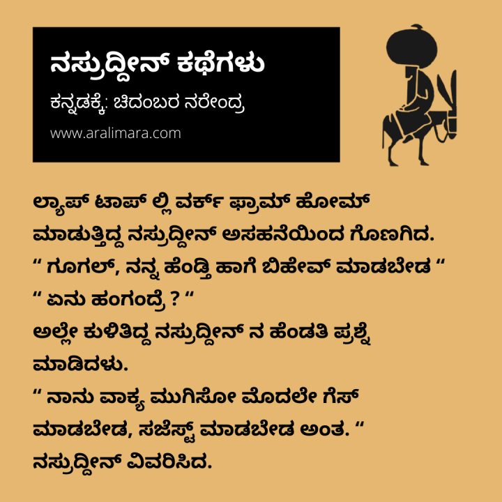 ಹೆಂಡ್ತಿ ಥರ ಆಡ್ಬೇಡ! : Tea time story ಏಪ್ರಿಲ್ 8, 2022 By ಅರಳಿ ಮರ Share this:Tweet Click to email a link to a friend (Opens in new window) Email Click to share on Telegram (Opens in new window) Telegram Click to share on WhatsApp (Opens in new window) WhatsApp ಇನ್ನಷ್ಟು Click to print (Opens in new window) Print Click to share on Reddit (Opens in new window) Reddit Share on TumblrLike ಲೋಡ್ ಆಗುತ್ತಿದೆ... Related About ಅರಳಿ ಮರ ಆಧ್ಯಾತ್ಮ, ವ್ಯಕ್ತಿತ್ವ ವಿಕಸನ ಮತ್ತು ಜೀವನ ಶೈಲಿ