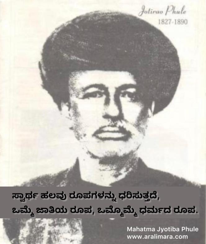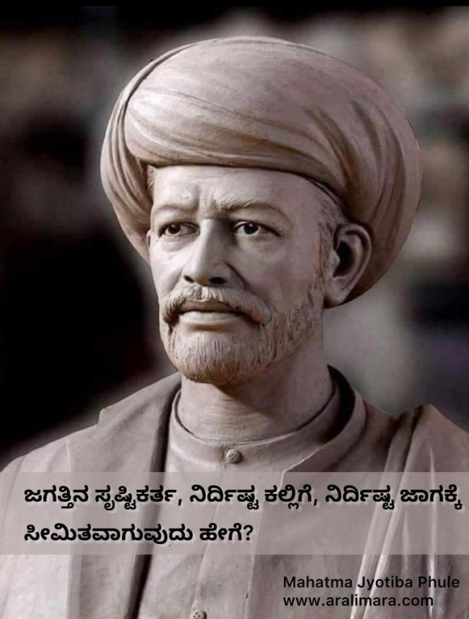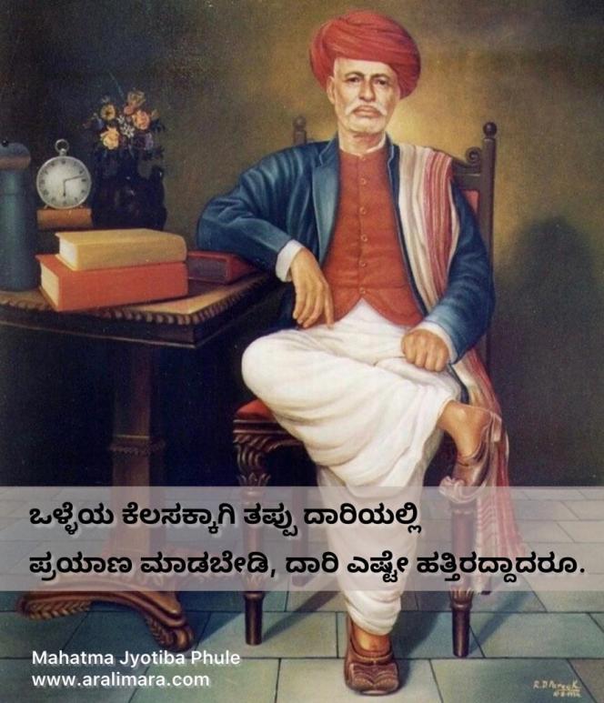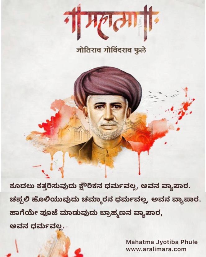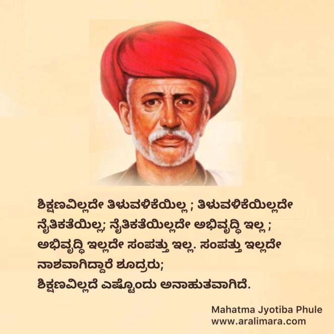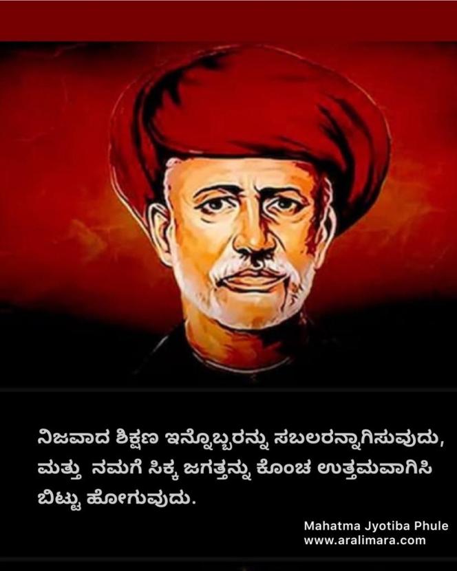 ಇಂದು ಮಹಾತ್ಮಾ ಜ್ಯೋತಿರಾವ್ ಫುಲೆ ಅವರು ಹುಟ್ಟಿದ ದಿನ. (11 ಏಪ್ರಿಲ್ 1827 – 28 ನವೆಂಬರ್ 1890) ದೇಶದಲ್ಲಿ ಎಲ್ಲರನ್ನೂ ಒಳಗೊಳಿಸಿಕೊಂಡ ನಿಜಾರ್ಥದ ‘ಶಿಕ್ಷಣ ಕ್ರಾಂತಿ’ಗೆ ಮುನ್ನುಡಿ ಬರೆದವರು ಫುಲೆ ದಂಪತಿ. ಜ್ಯೋತಿರಾವ್ ಫುಲೆಯವರ ಆದರ್ಶಗಳನ್ನು ನೆನಯುತ್ತಾ, ಇಂದಿನ ಚಿತ್ರಭಿತ್ತಿಯಲ್ಲಿ ಕೆಲವು ಹೊಳಹುಗಳು… । ಸಂಗ್ರಹ ಮತ್ತು ಅನುವಾದ: ಚಿದಂಬರ ನರೇಂದ್ರ