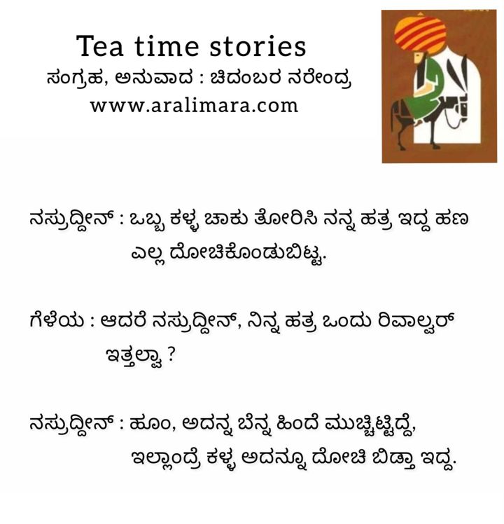 ಲೂಟಿಗೊಳಗಾದ ನಸ್ರುದ್ದೀನ್ : tea time story ಏಪ್ರಿಲ್ 27, 2022 By ಅರಳಿ ಮರ Share this:Tweet Click to email a link to a friend (Opens in new window) Email Click to share on Telegram (Opens in new window) Telegram Click to share on WhatsApp (Opens in new window) WhatsApp ಇನ್ನಷ್ಟು Click to print (Opens in new window) Print Click to share on Reddit (Opens in new window) Reddit Share on TumblrLike ಲೋಡ್ ಆಗುತ್ತಿದೆ... Related About ಅರಳಿ ಮರ ಆಧ್ಯಾತ್ಮ, ವ್ಯಕ್ತಿತ್ವ ವಿಕಸನ ಮತ್ತು ಜೀವನ ಶೈಲಿ
