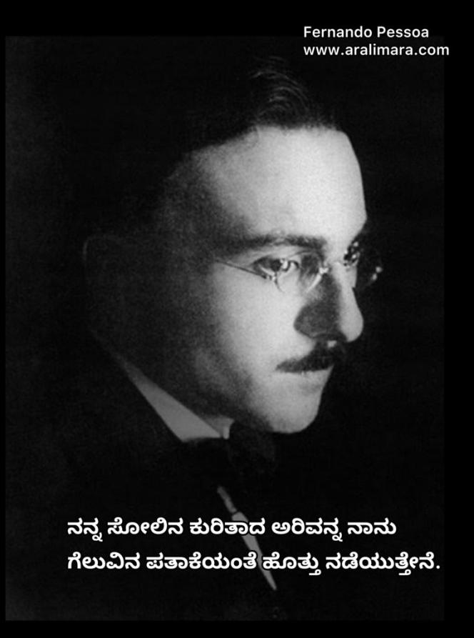 ಪೆಸ್ಸೋಆ ಹೊಳಹುಗಳು: ಅರಳಿಮರ posters ಜೂನ್ 16, 2022 By ಅರಳಿ ಮರ ಪೋರ್ಚುಗೀಸ್ ಕವಿ Fernando Pessoa ಕಾವ್ಯ ಹನಿ, ಇಂದಿನ ಚಿತ್ರಭಿತ್ತಿಯಲ್ಲಿ… | ಸಂಗ್ರಹ ಮತ್ತು ಅನುವಾದ : ಚಿದಂಬರ ನರೇಂದ್ರ 1 2 3 4 5 6 7 Share this:Tweet Click to email a link to a friend (Opens in new window) Email Click to share on Telegram (Opens in new window) Telegram Click to share on WhatsApp (Opens in new window) WhatsApp ಇನ್ನಷ್ಟು Click to print (Opens in new window) Print Click to share on Reddit (Opens in new window) Reddit Share on TumblrLike ಲೋಡ್ ಆಗುತ್ತಿದೆ... Related About ಅರಳಿ ಮರ ಆಧ್ಯಾತ್ಮ, ವ್ಯಕ್ತಿತ್ವ ವಿಕಸನ ಮತ್ತು ಜೀವನ ಶೈಲಿ