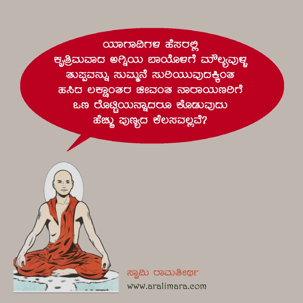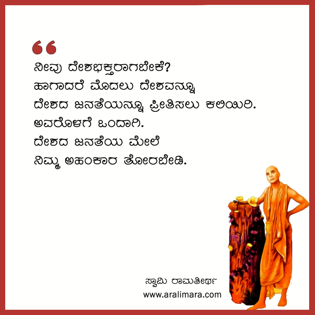 […] ಸ್ವಾಮಿ ರಾಮತೀರ್ಥರು ಸನಾತನ ಧರ್ಮ ಹಾಗೂ ಭಾರತ ದೇಶದ ಬಗ್ಗೆ ಅಪಾರ ಪ್ರೀತಿ ಇರಿಸಿಕೊಂಡವರು. ಆದ್ದರಿಂದಲೇ ಅವರು ಎಂದಿಗೂ ನಮ್ಮ ದೇಶ ಮತ್ತು ಧರ್ಮದೊಳಗಿನ ಕೊರತೆಗಳನ್ನು ಎತ್ತಿ ಹೇಳಲು, ನಮ್ಮ ರೀತಿನೀತಿಗೆ ಕನ್ನಡಿ ಹಿಡಿಯಲು ಹಿಂಜರಿಯಲಿಲ್ಲ. ಅವರ ದೇಶಧರ್ಮದ ಕುರಿತ ನೈಜ ಕಾಳಜಿಯ ಕೆಲವು ಹೊಳಹುಗಳು ಇಲ್ಲಿವೆ. ಇದು ಎರಡನೇ ಕಂತು . ಮೊದಲನೇ ಕಂತು ಇಲ್ಲಿ ನೋಡಿ : https://aralimara.com/2021/09/28/ramt/ […]