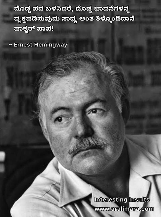 ತಮ್ಮ ವಿರೋಧ, ಹಗೆತನ, ಅಸಮಾಧಾನಗಳನ್ನು ಸ್ವಾರಸ್ಯಕರವಾಗಿ ತೋಡಿಕೊಳ್ಳುವುದೂ ಒಂದು ಜಾಣತನ. ಇದೊಂದು ಸೃಜನಶೀಲ ಮಾತಿನ ಕಲೆ. ಸಾಧಕರಿಗೆ ಬಹುವಾಗಿ ಈ ಕಲೆ ಕರಗತ! ಇಂಗ್ಲಿಷ್ ನಲ್ಲಿ ಇಂಥ ಹೇಳಿಕೆಗಳನ್ನು interesting insults ಅನ್ನುತ್ತಾರೆ. ಅಂಥ ಕೆಲವು ಜಾಣ ಹೇಳಿಕೆಗಳ ಗುಚ್ಛ ಇಲ್ಲಿದೆ.